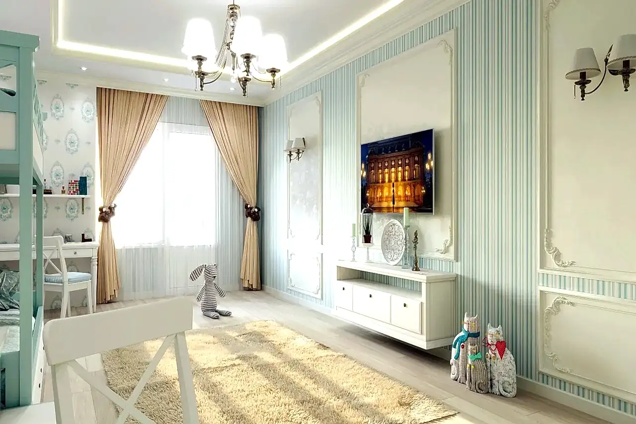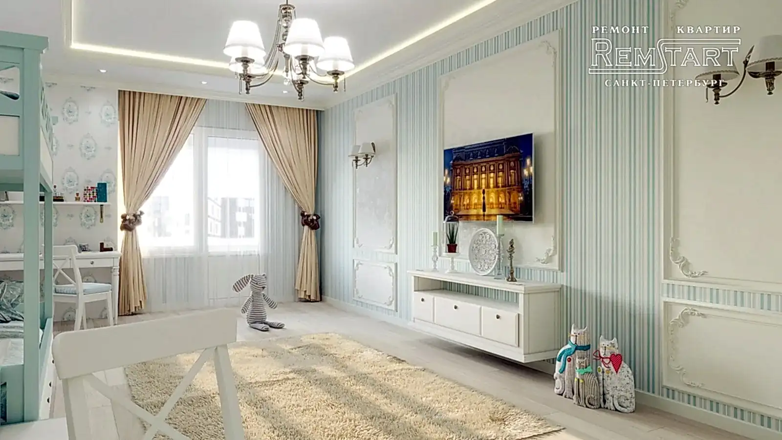 Дизайн квартирыв ЖК Царская Столица выполнялся для молодой семьи с двумя детьми. Каждый выполняемый нашими специалистами интерьер, Pin Up на удовлетворение всех пожеланий клиента.