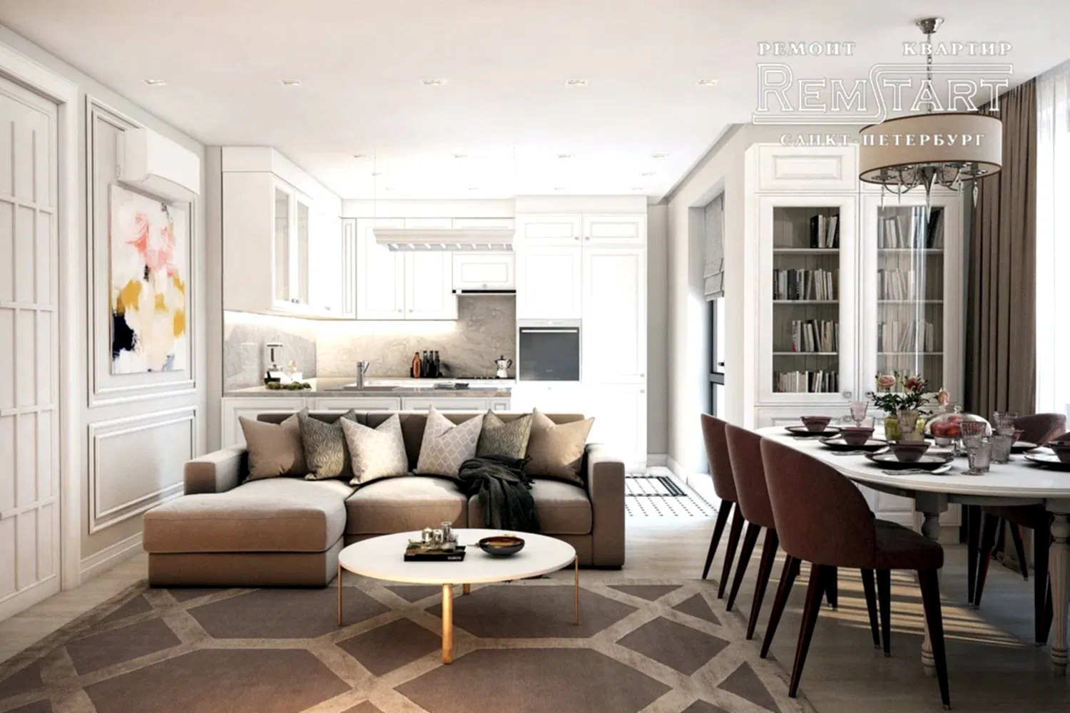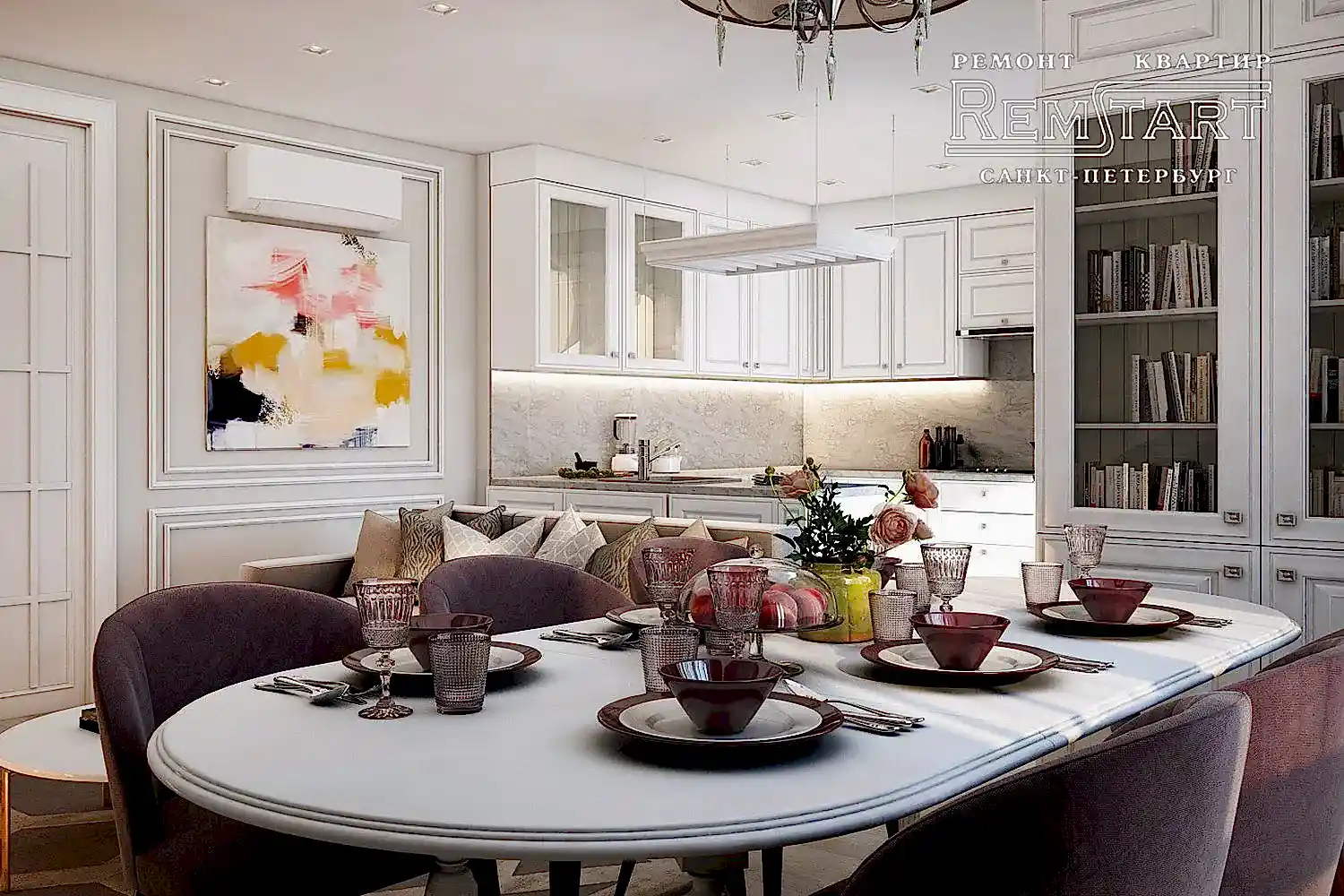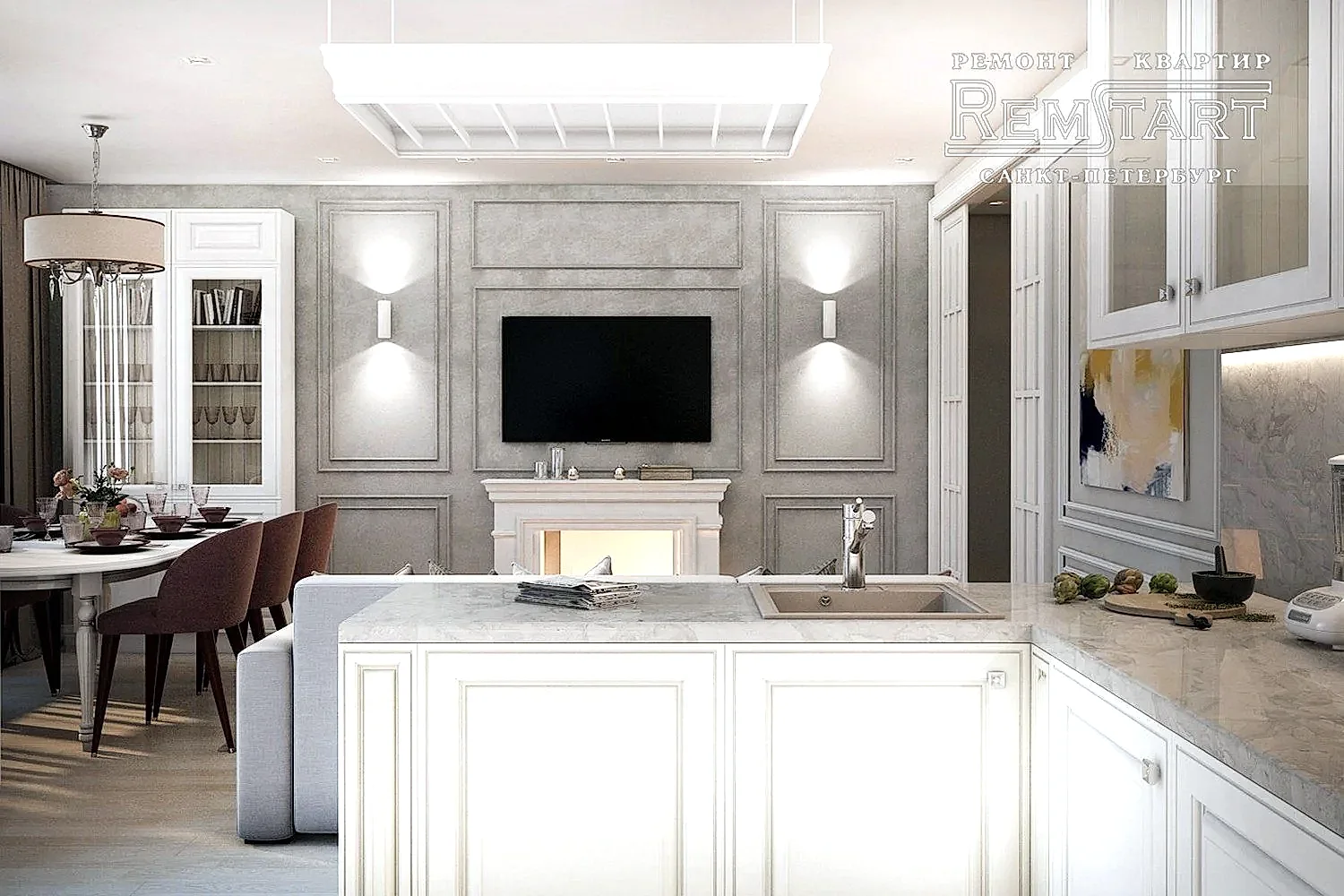 Ремонт в новостройкебизнес класса ЖК Дом на излучине Невы на Пискаревскомпр. Байтурсынова, 36 с учетом особенностей индивидуального стиля и предпочтений заказчиков. Реализация выполнена в дистанционном режиме.