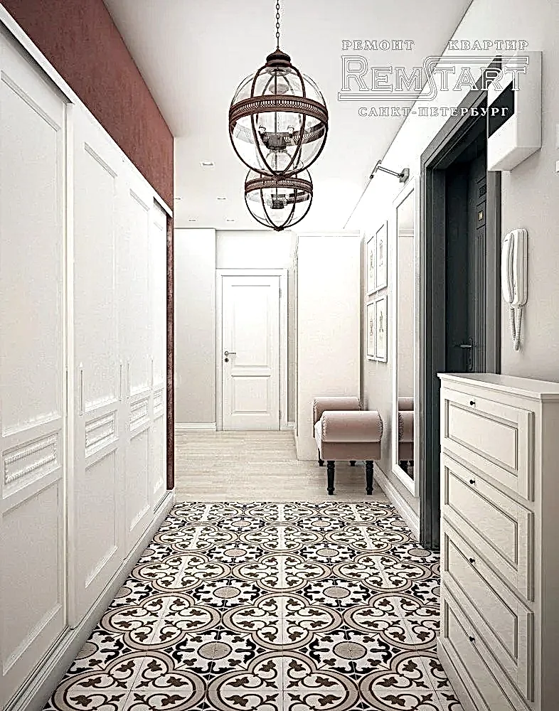 В отделке применялись материалы премиум класса, это Pin Up багет, декоративная штукатурка, кафель и паркетная доска.
