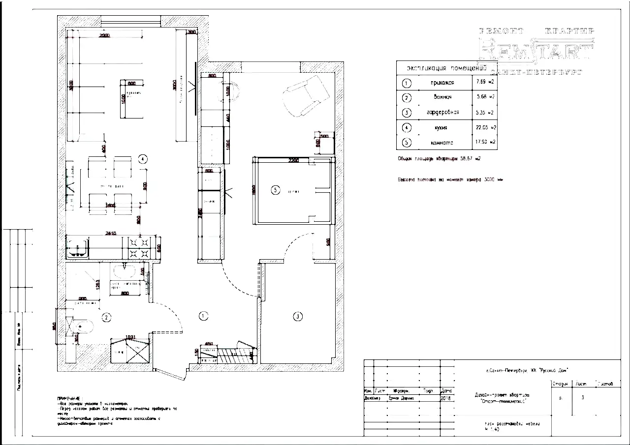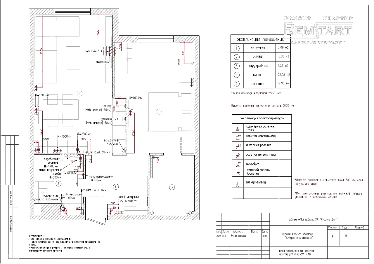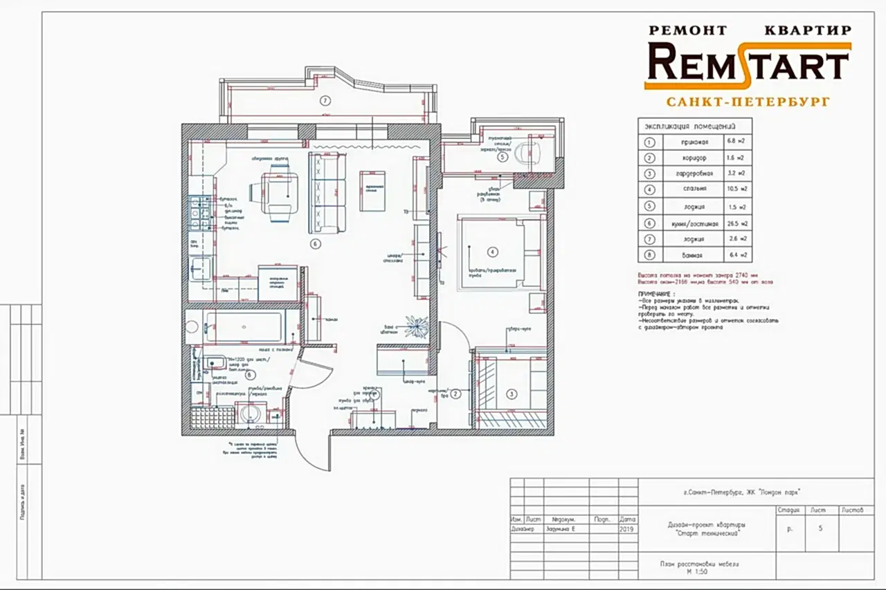 - Расположение мебели и бытовой техники
