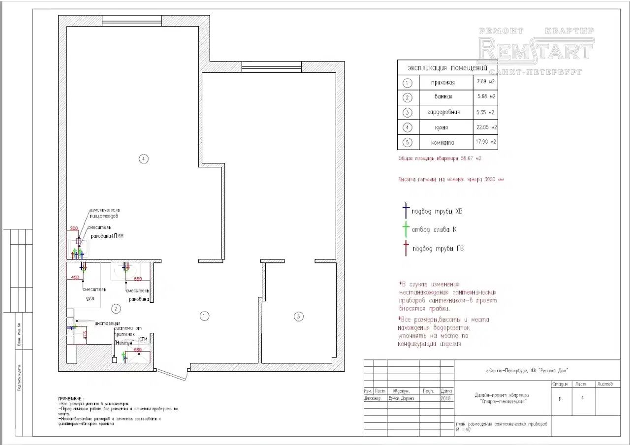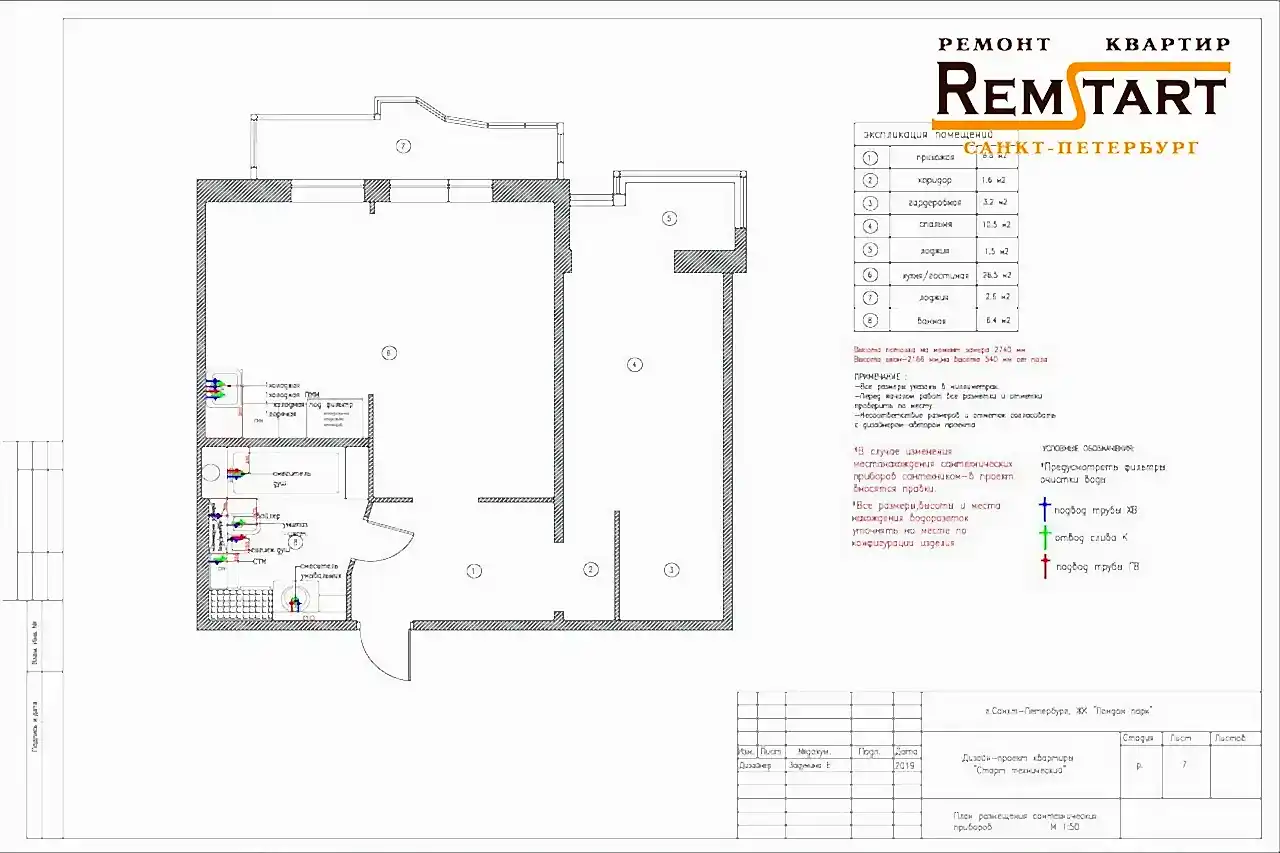 - Размещение сантехнических приборов