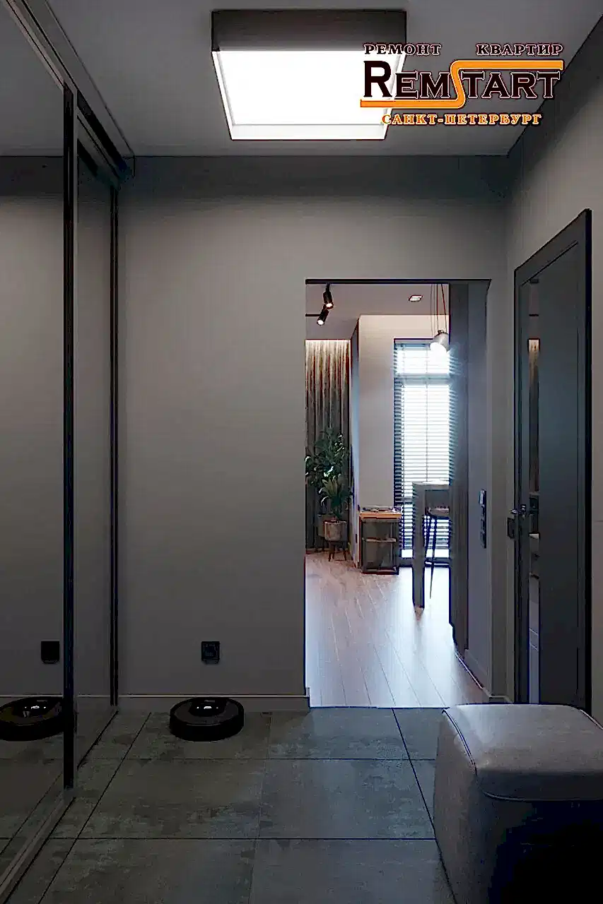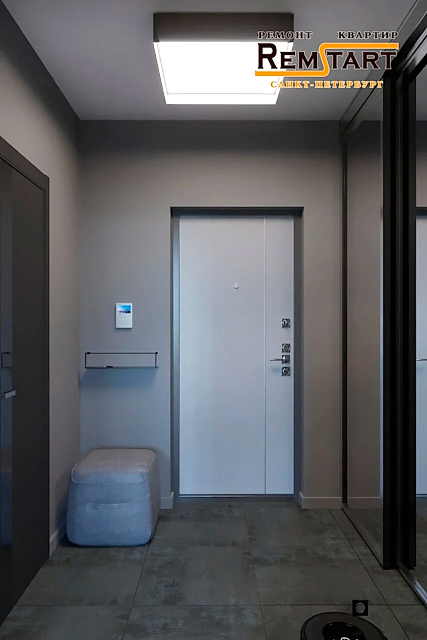 В прихожей предусмотрен зеркальный шкаф-купе и удобные Pin Up шкафы для хранения.