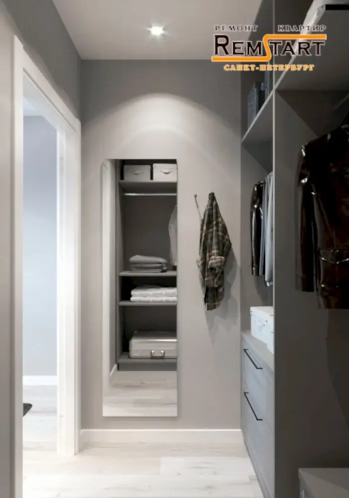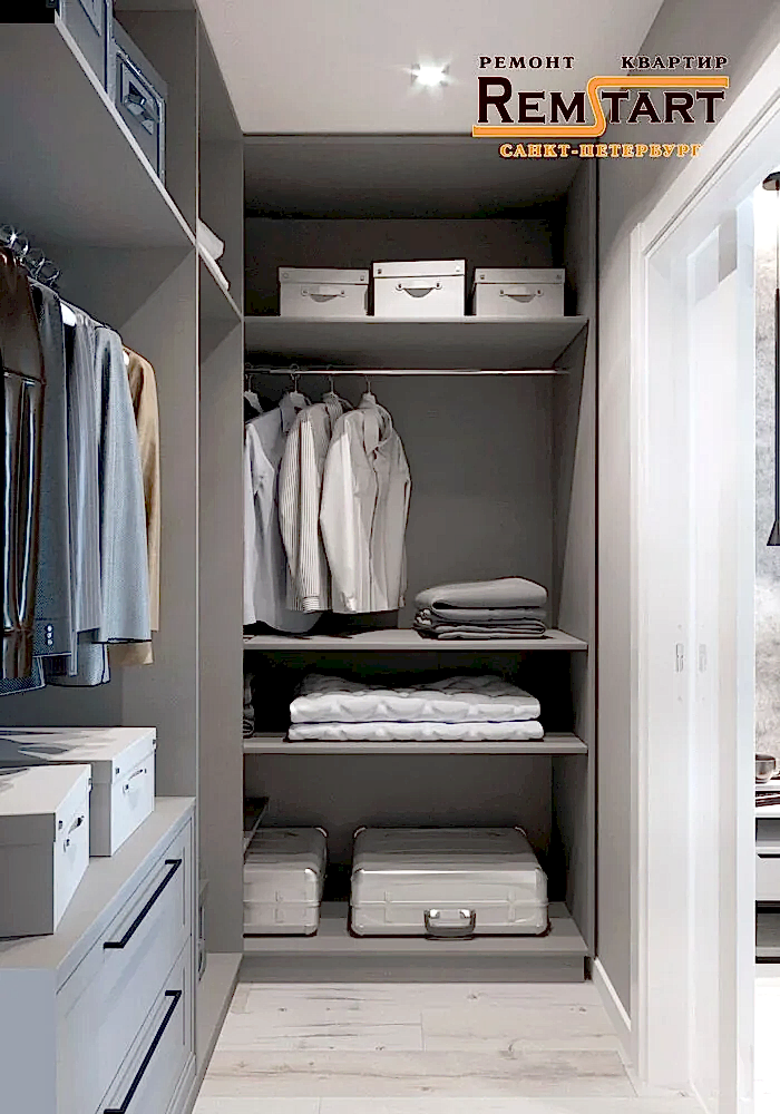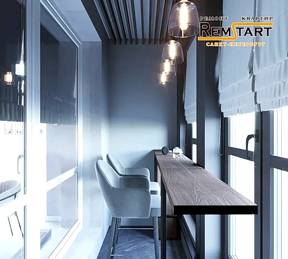 Применено зонирование Pin Up и гостиной с помощью стеклянной раздвижной перегородки, на балконе сделана большая барная стойка, для творческого обсуждения с друзьями. Предусмотрена большая гардеробная с удобной системой хранения.