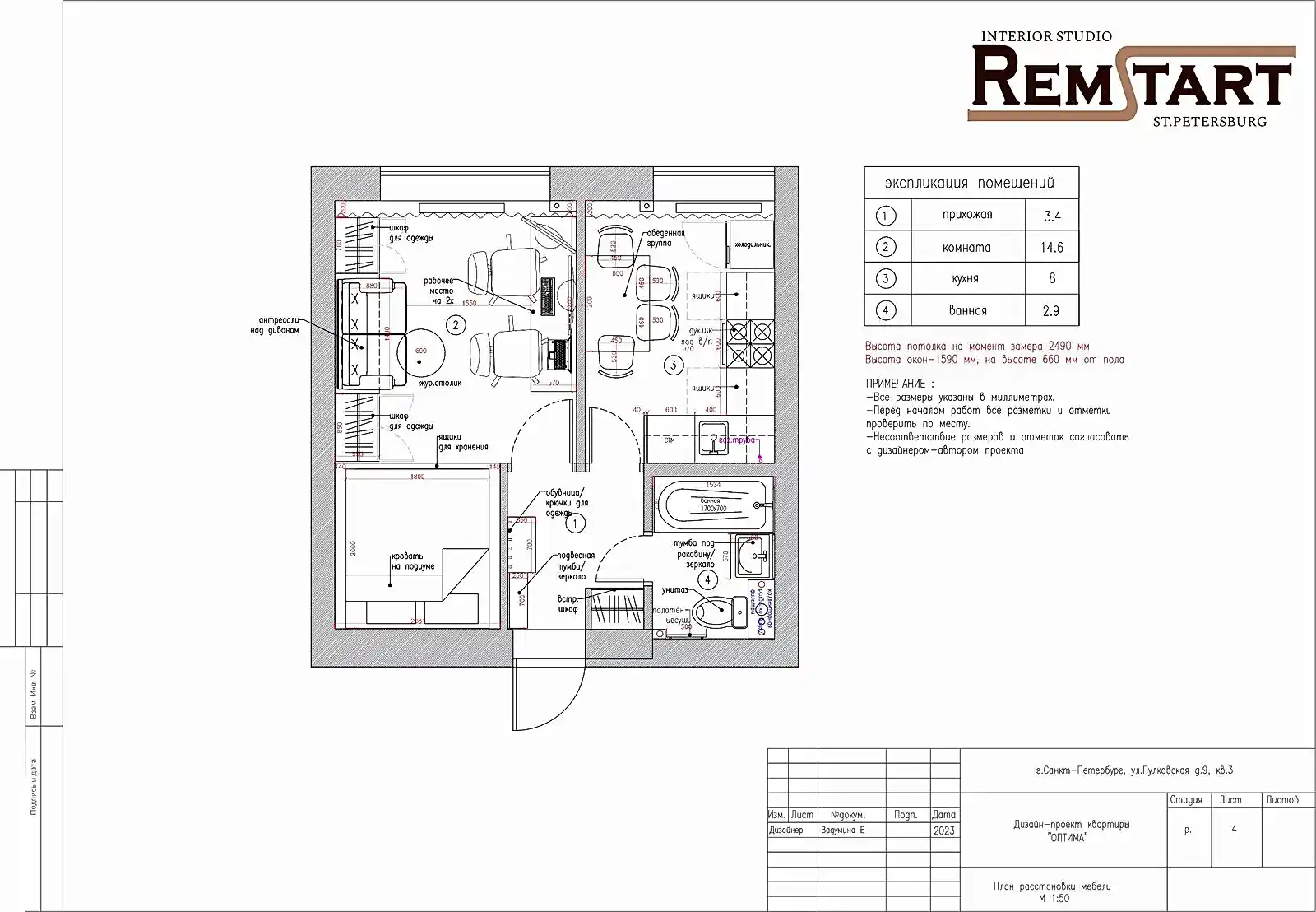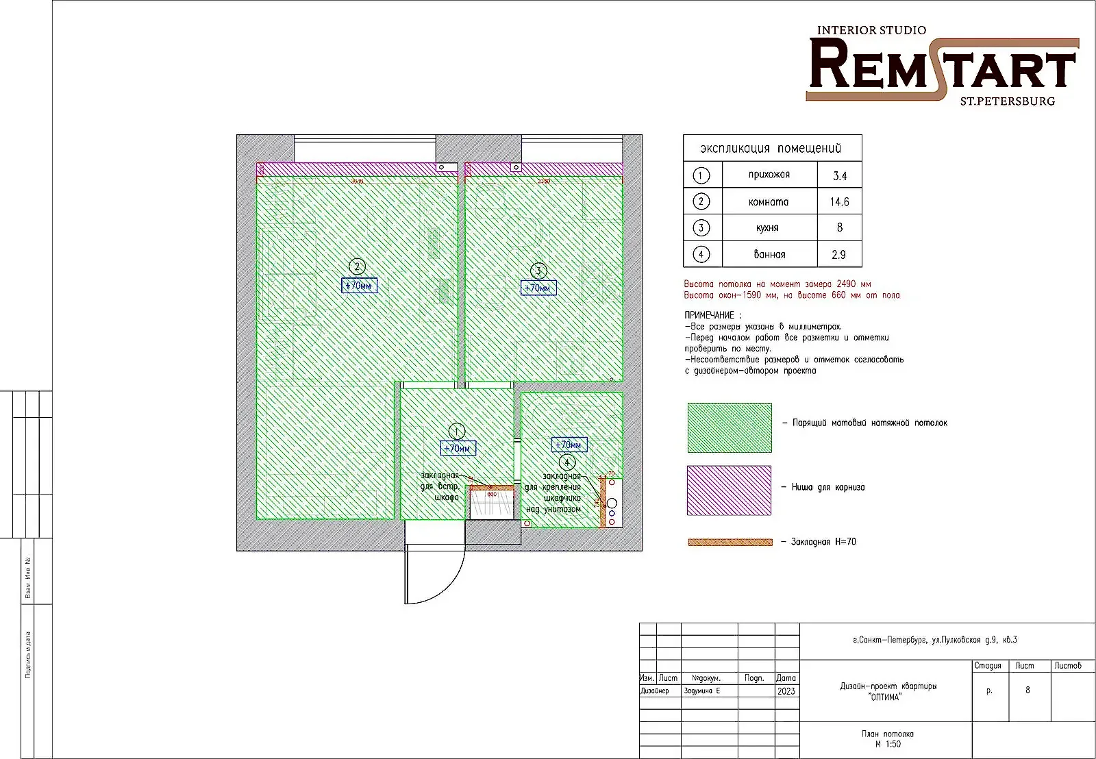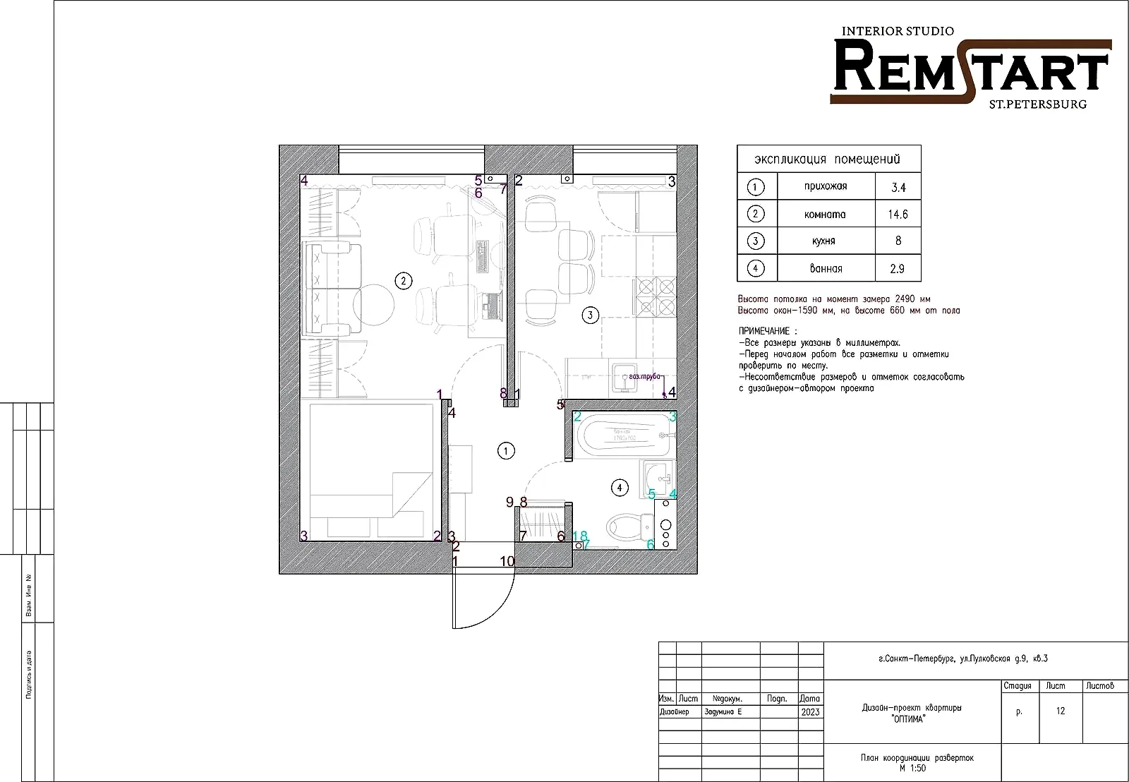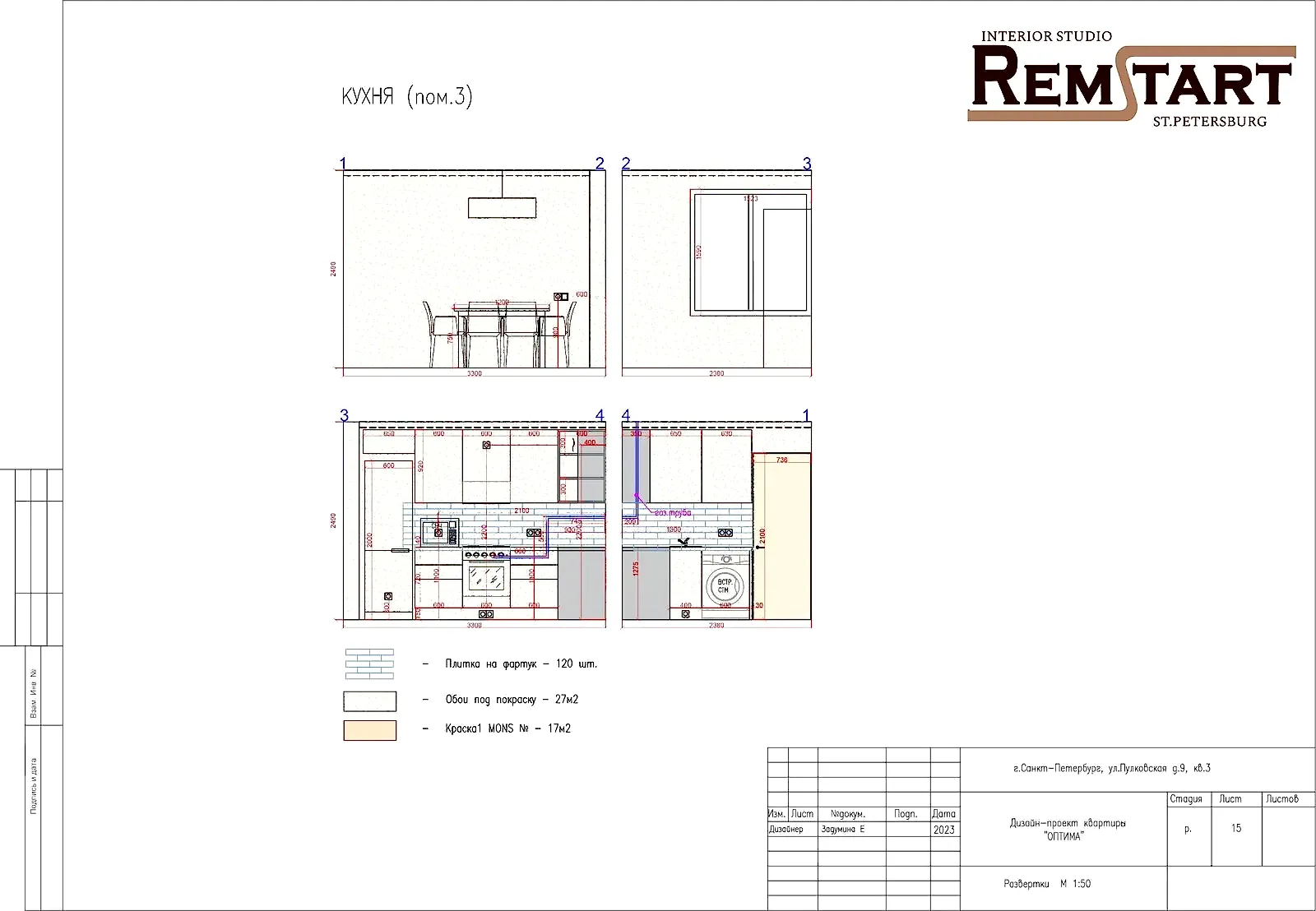 После первичной консультации нашего специалиста, был заказан дизайн-проект для небольшой Pin Up в ЖК Пулковский посад.