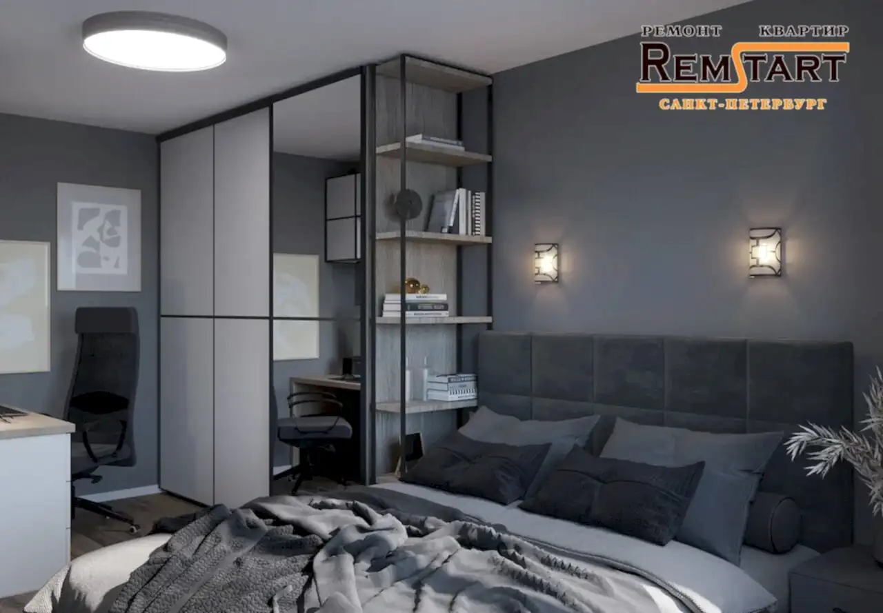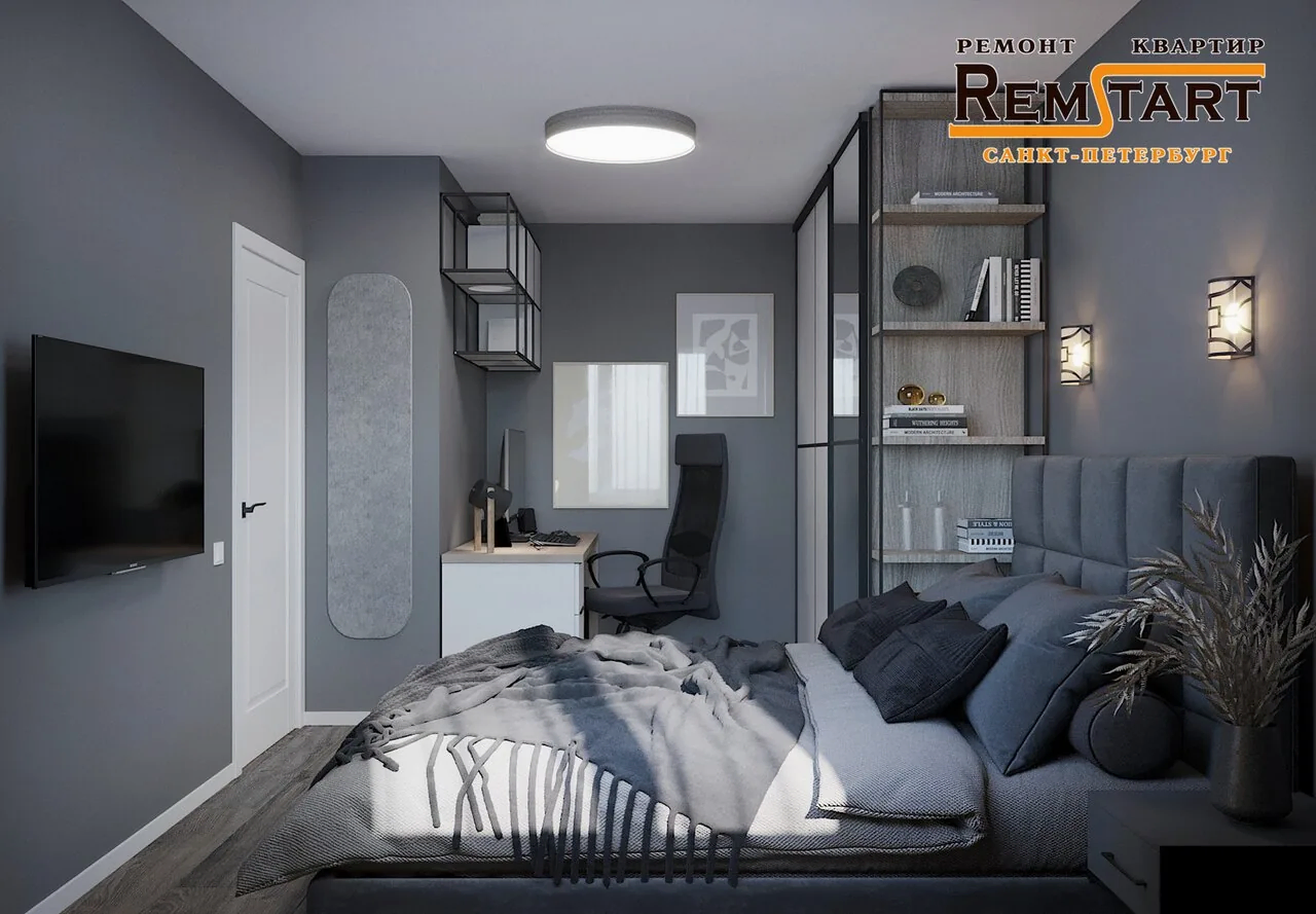 Ремонт квартиры в Астанедля молодого человека Pin Up в современном стиле с элементами лофта, металлические конструкции в мебели подчеркивают это.
