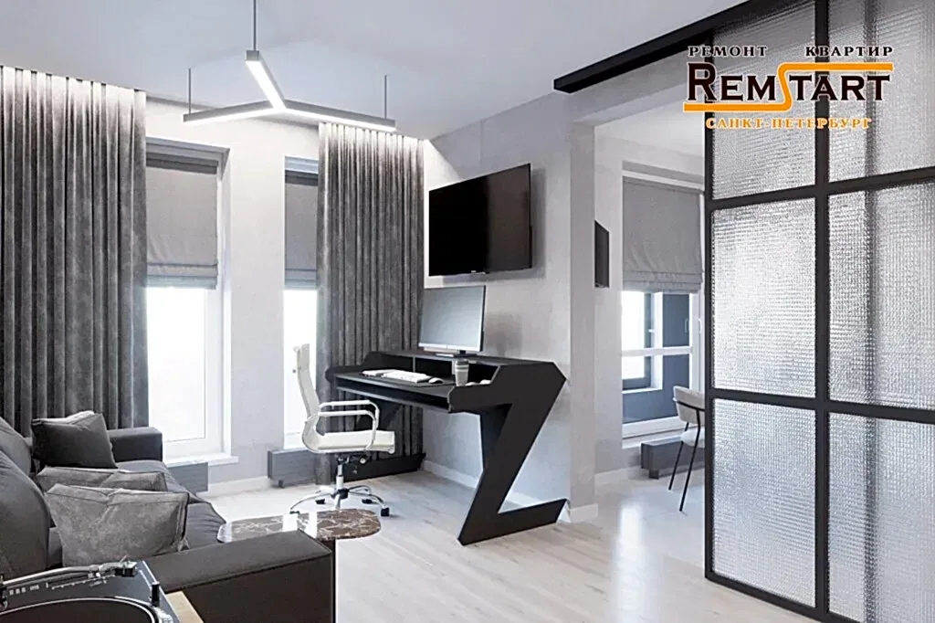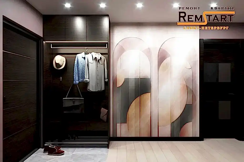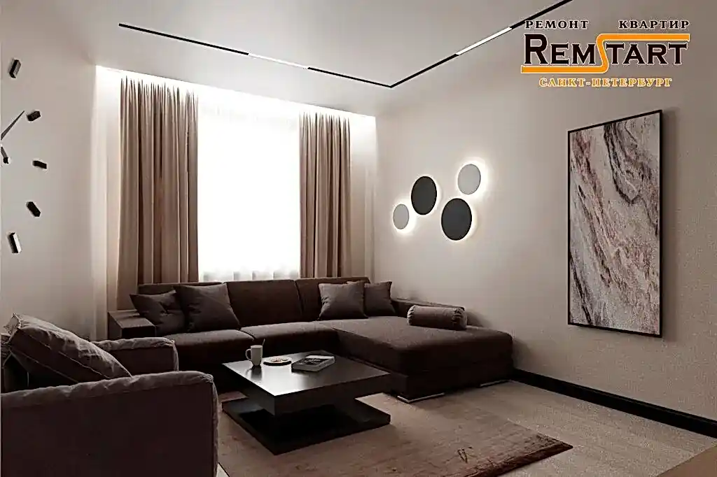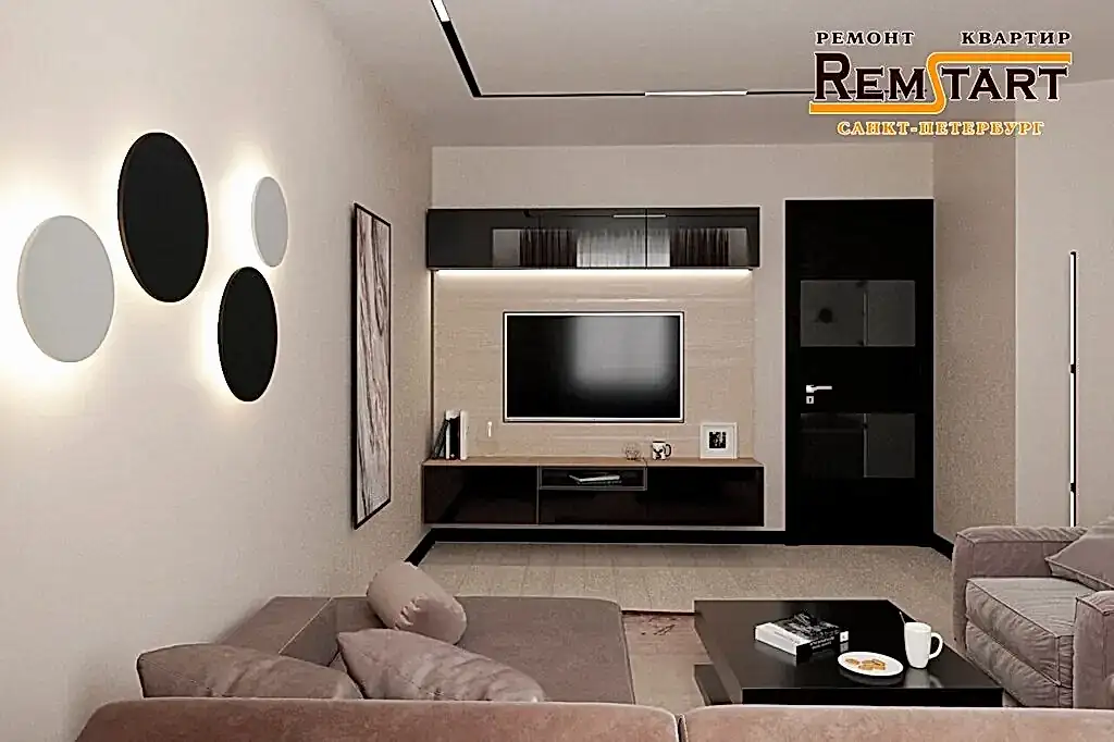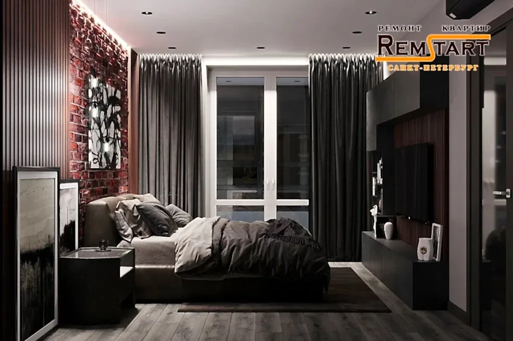 Красивый темный интерьер двухкомнатной квартиры в современном стиле, разработан для заказчика из Pin Up города.