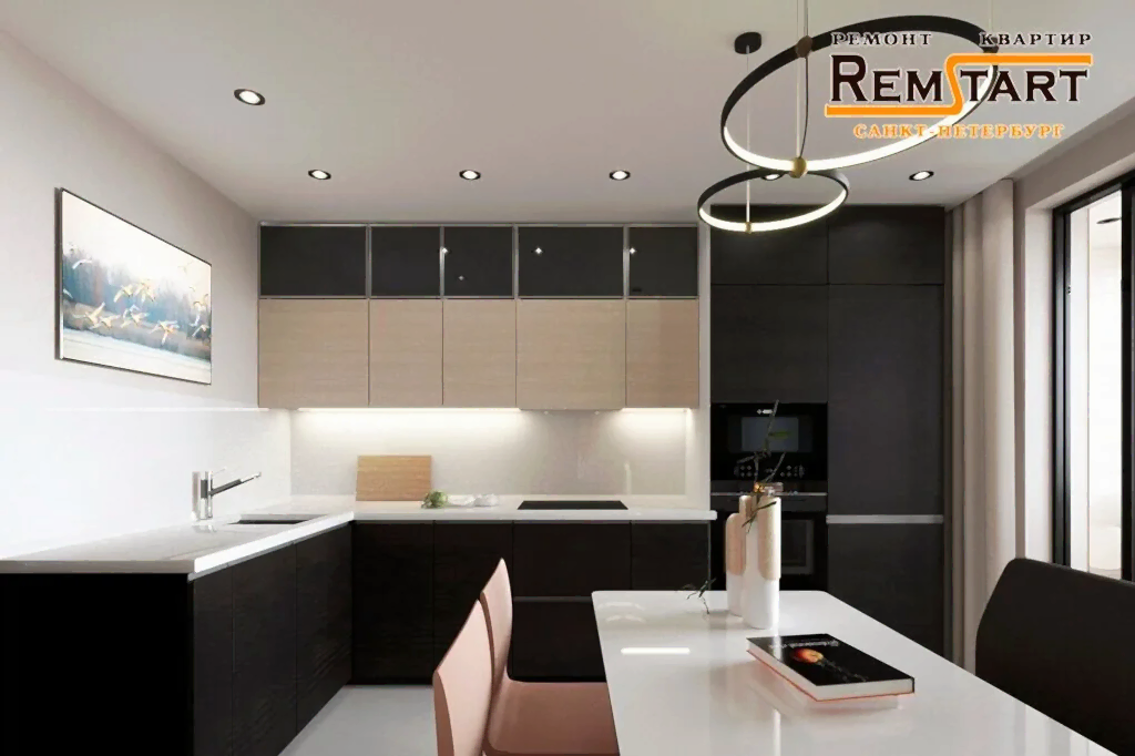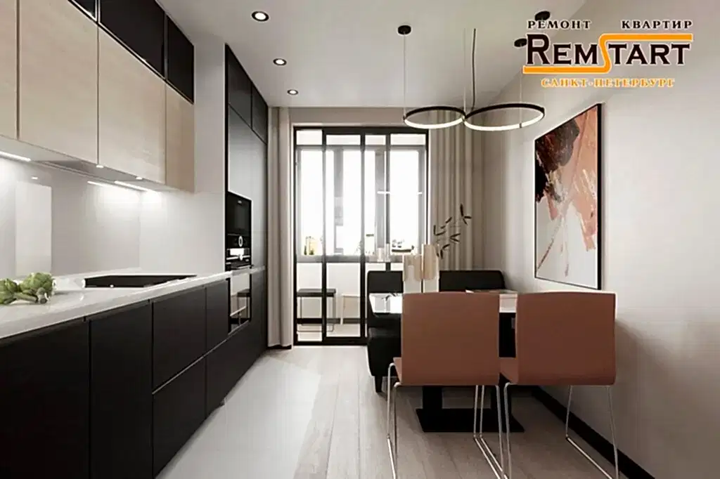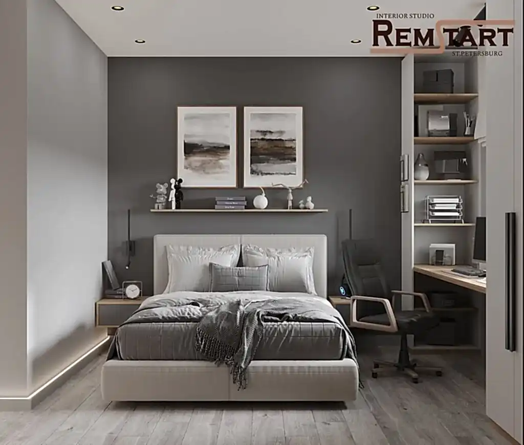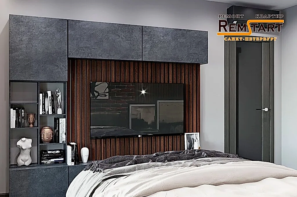 Красивый темный интерьер двухкомнатной квартиры в современном стиле, разработан для заказчика из Pin Up города.