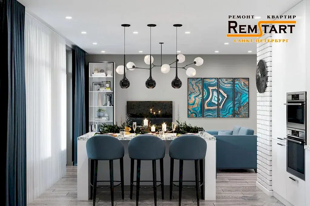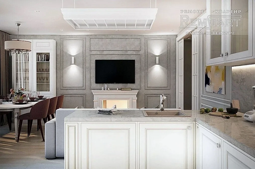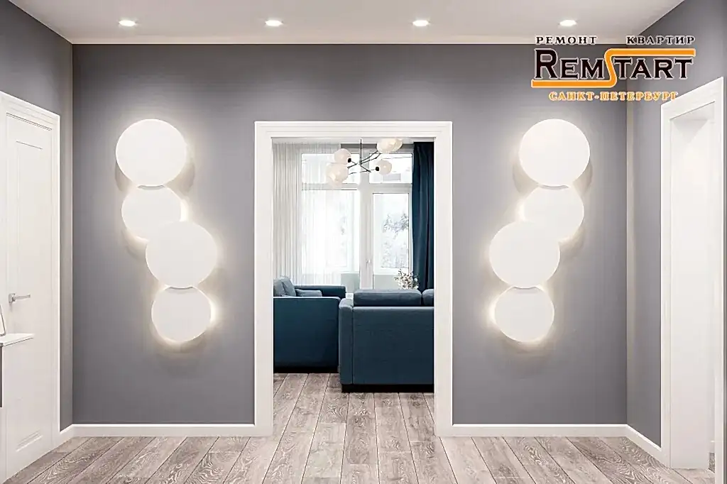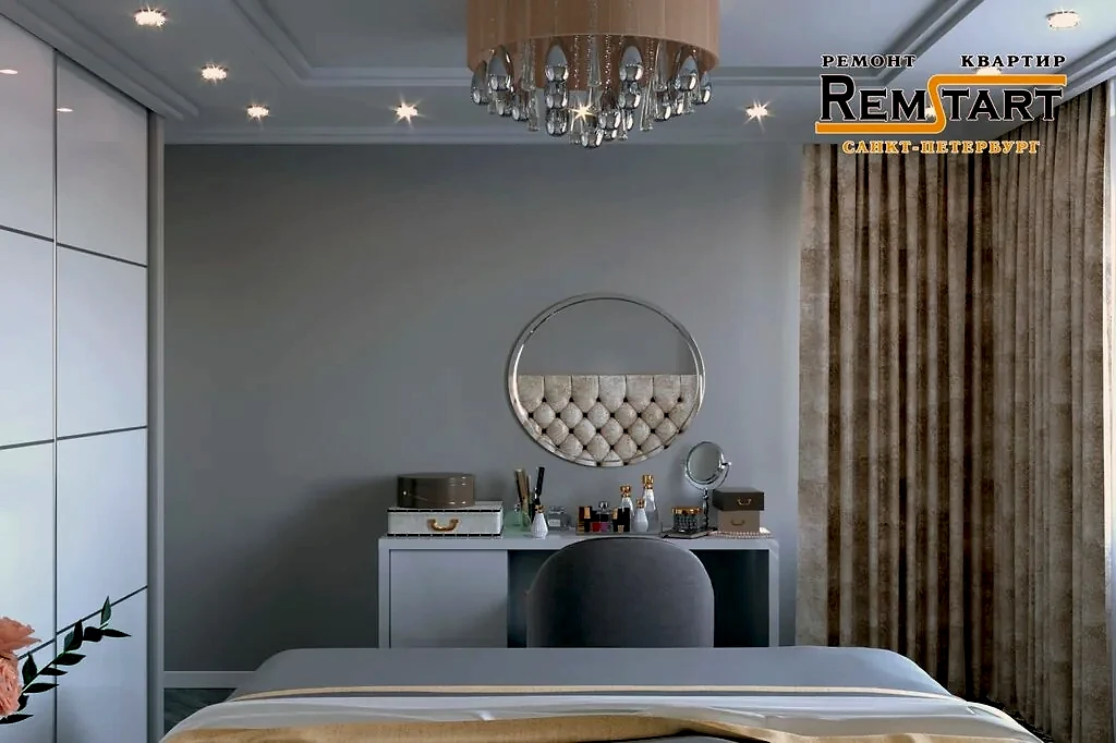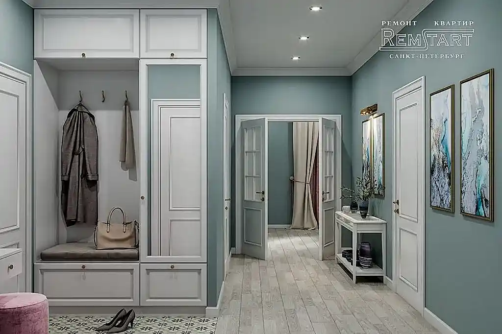 Pin Up заказчиков было оформление двухкомнатной квартиры в неоклассическом стиле дляэлитного ремонта. В Pin Up преобладают холодные серые и голубые оттенки.