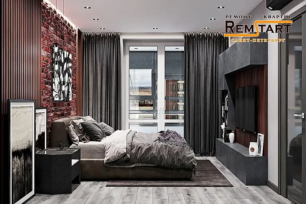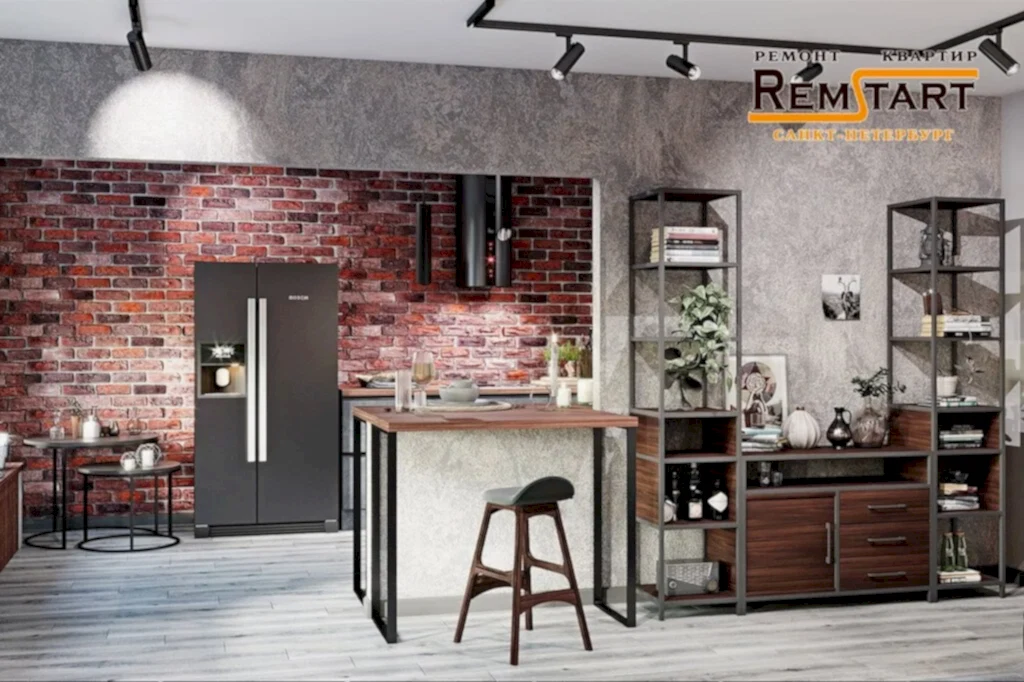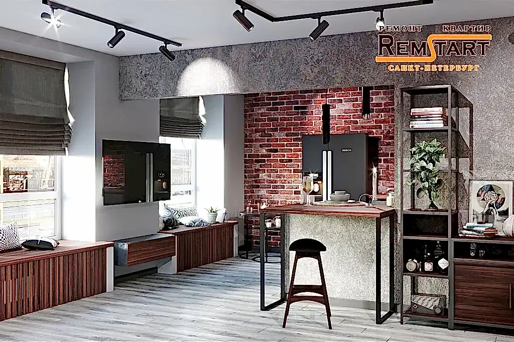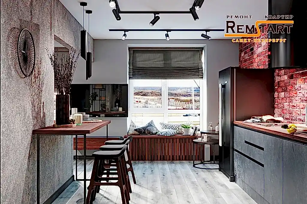 Разработка дизайна двушки в новостройке Pin UpНовоселье. Выбранное решение - урбанистичный лофт с Pin Up кирпичом, трековыми светильниками и характерными материалами.