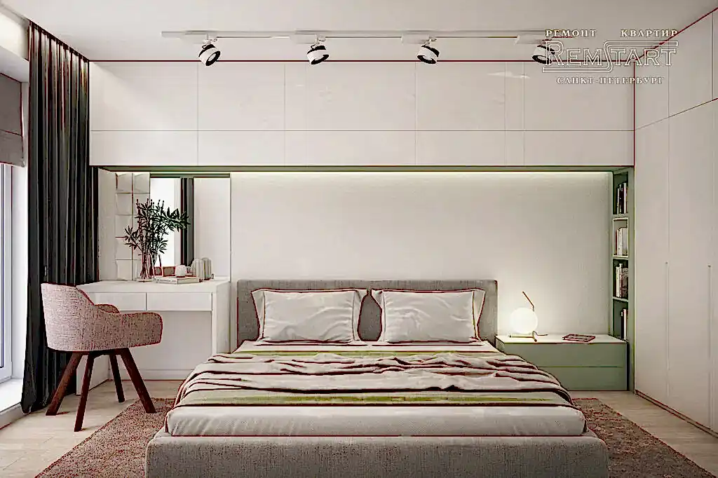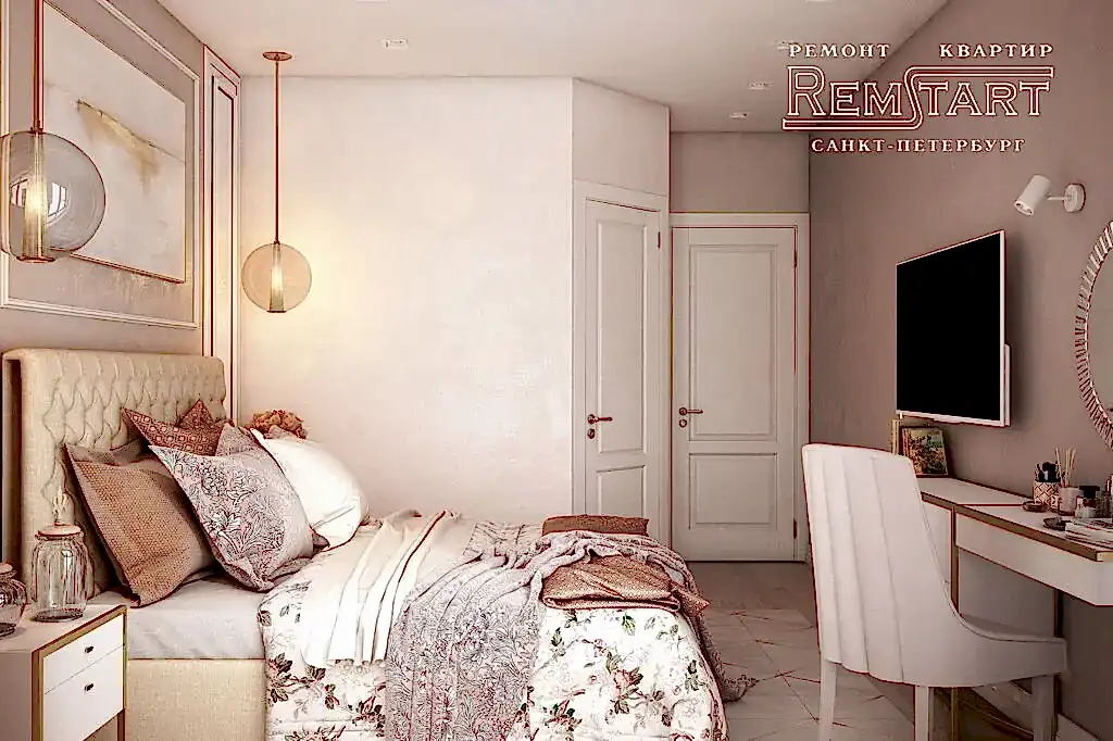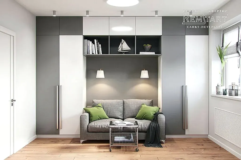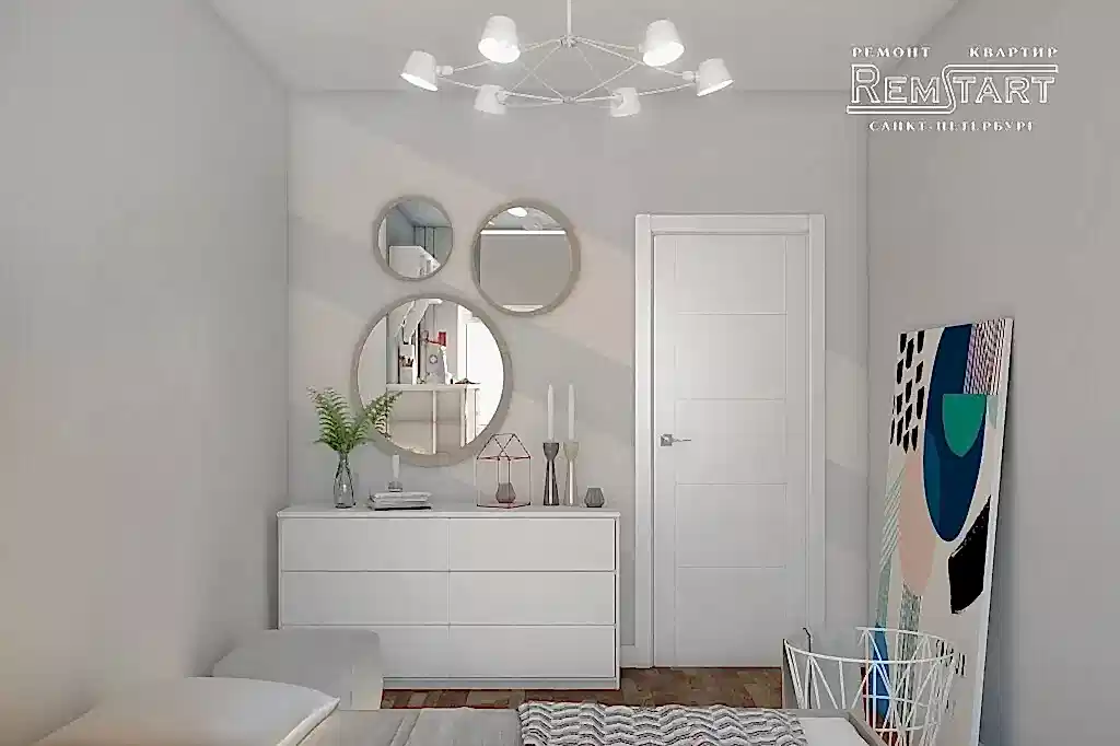 Оформление двухкомнатной квартиры в светлых цветах и оттенках для молодой семьи, Pin Up планировала стать родителями.
