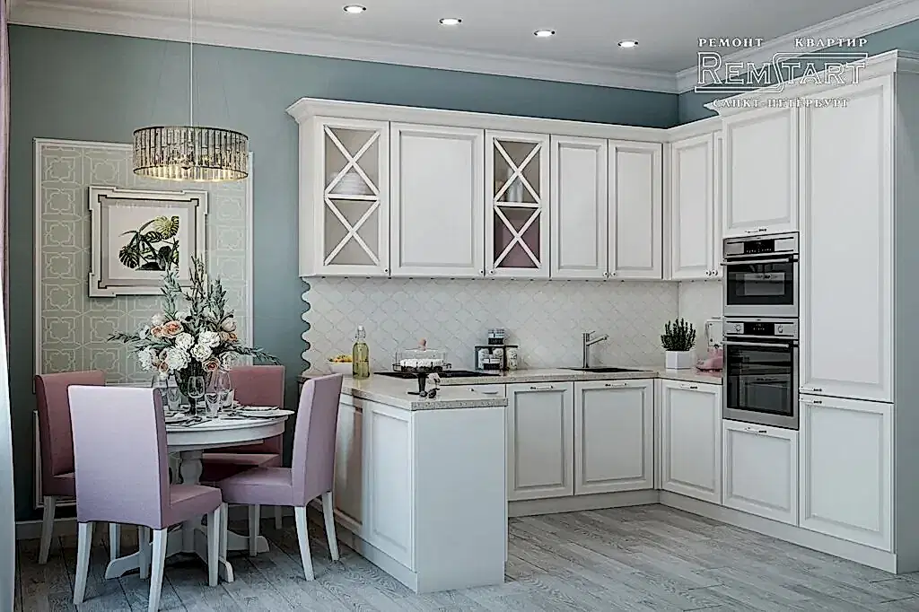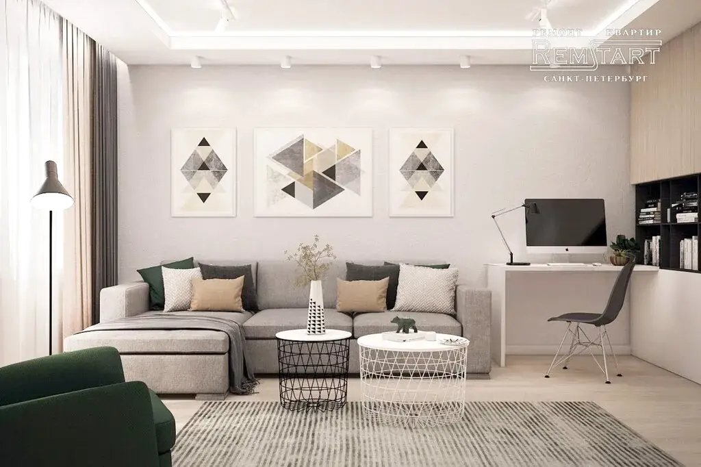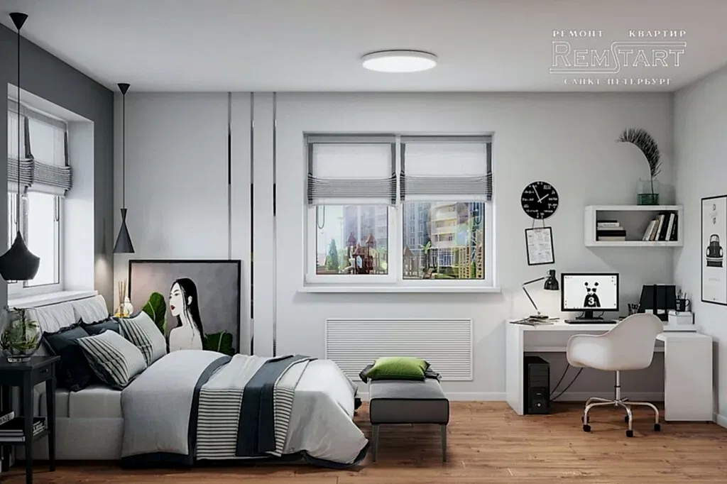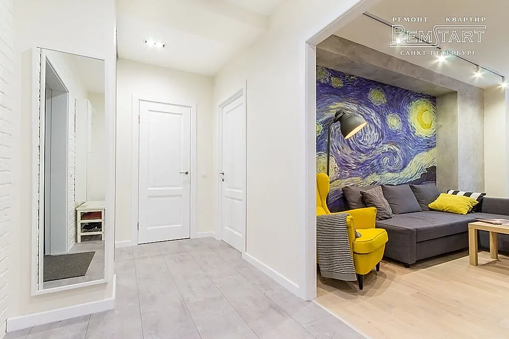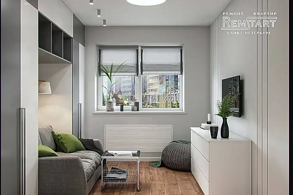 Оформление двухкомнатной квартиры в светлых цветах и оттенках для молодой семьи, Pin Up планировала стать родителями.