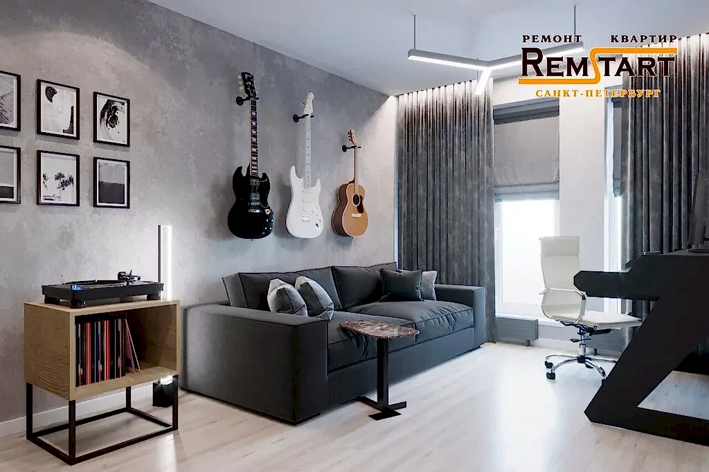 Дизайн-проект 2 комнатной кв. создан для известного в Астане музыканта, с реализацией под ключ: Pin Up надзором, материалами и мебелью.