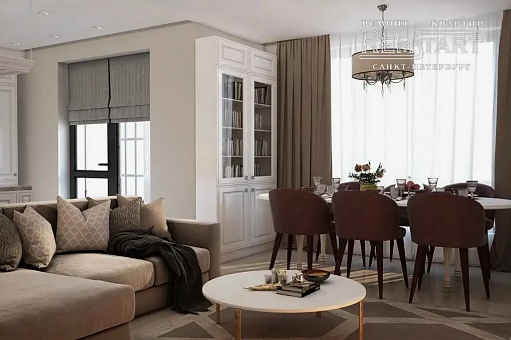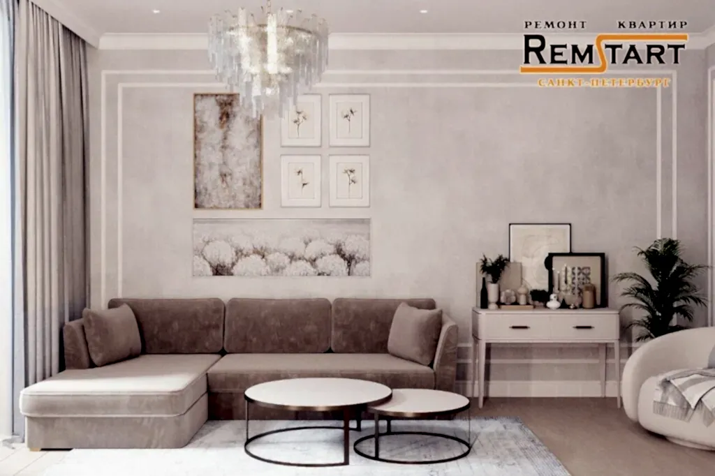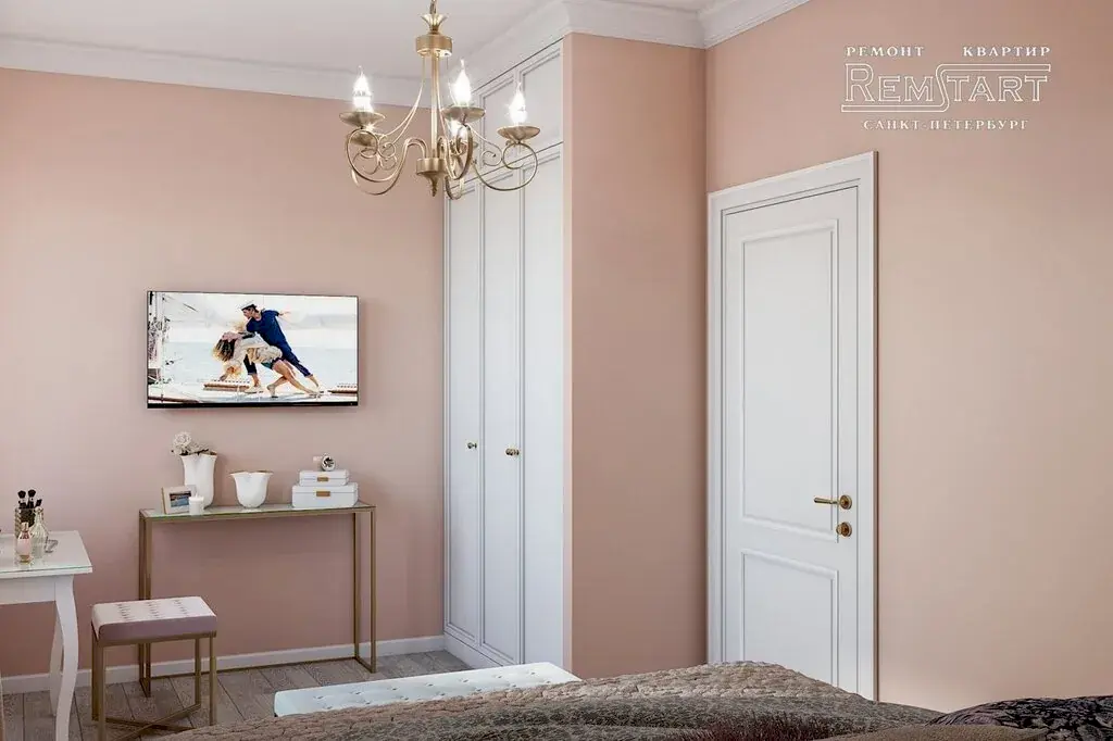 Светлый интерьер бежевого и Pin Up цвета с дорогостоящими материалами разработан дляремонта квартиры в г. ПушкинЛенинградской области.