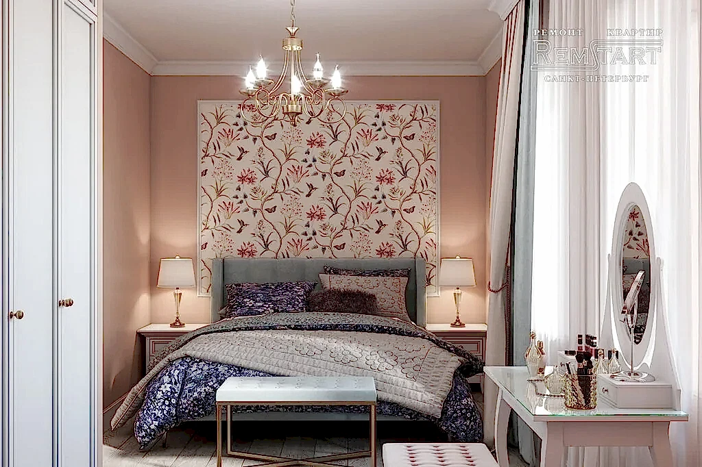 Оформление интерьера двухкомнатной квартиры в сочетании нескольких стилей включая нотки французского Pin Up и классики.