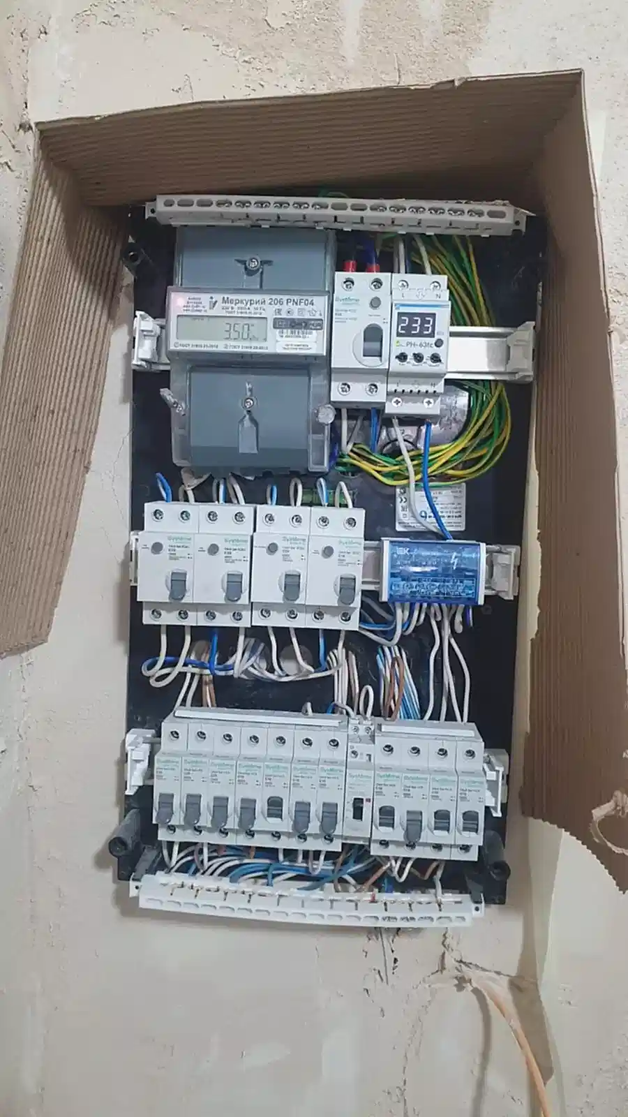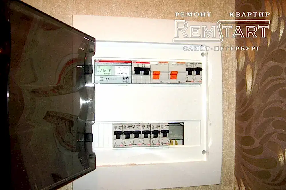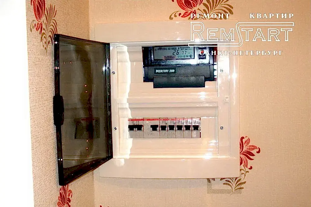 При комплексном ремонте старых квартир, обязательным условием безопасности - является замена старой алюминиевой проводки на Pin Up и доработка электрического щита. Счетчик энергоучета необходимо заменить на двухтарифный.