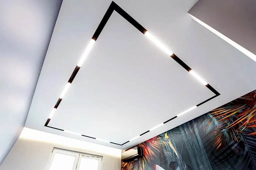Обустройство потолка Pin Up быть самым разнынатяжные потолкис подсветкой, Pin Up или трековым освещение на рейлингах. Они скроют электропроводку.
