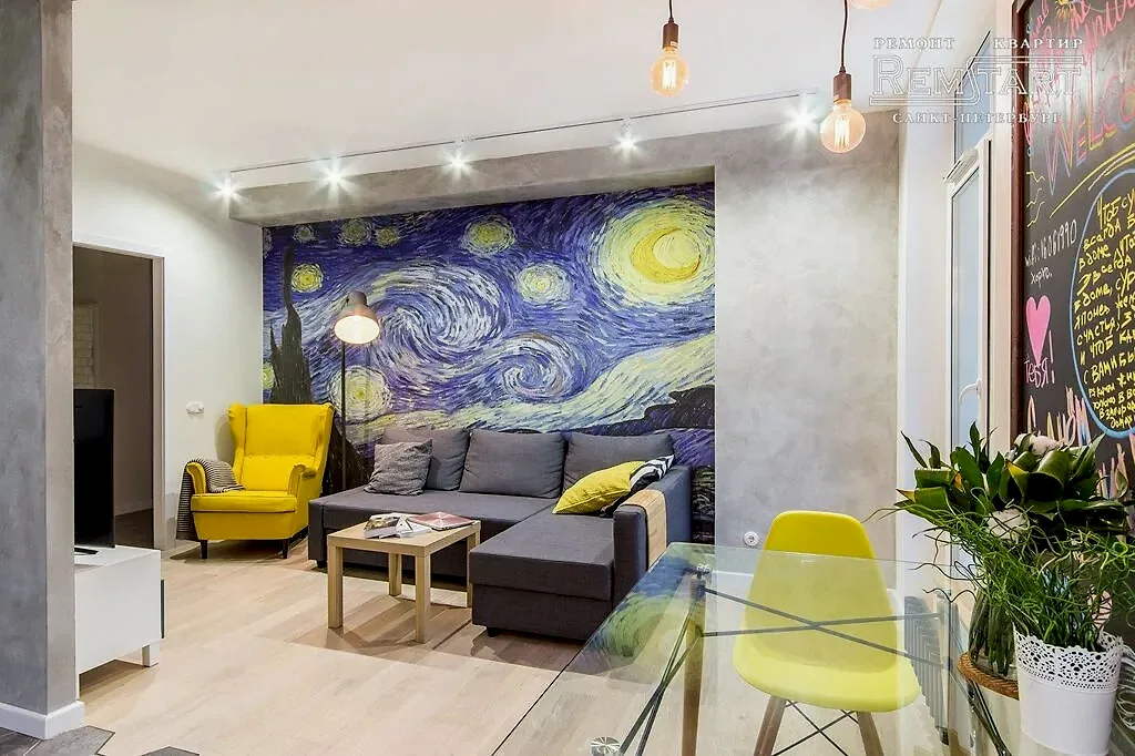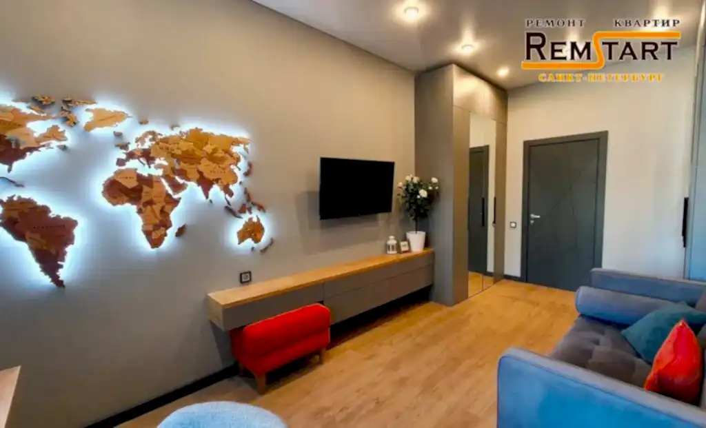 Красивый улучшенный ремонт двухкомнатной квартиры в Pin Up с элементами комфорта для проживания.