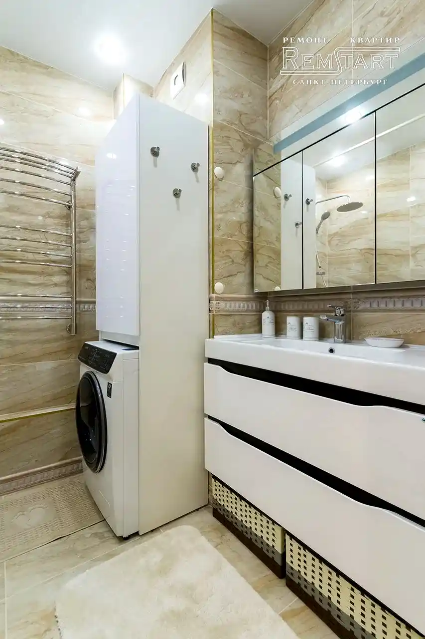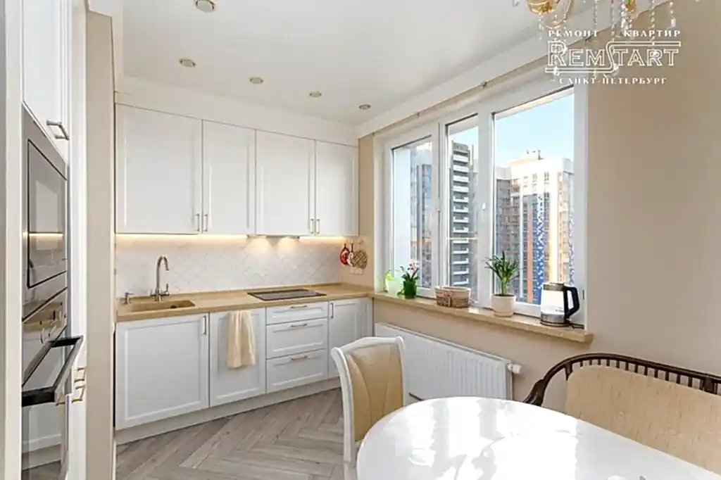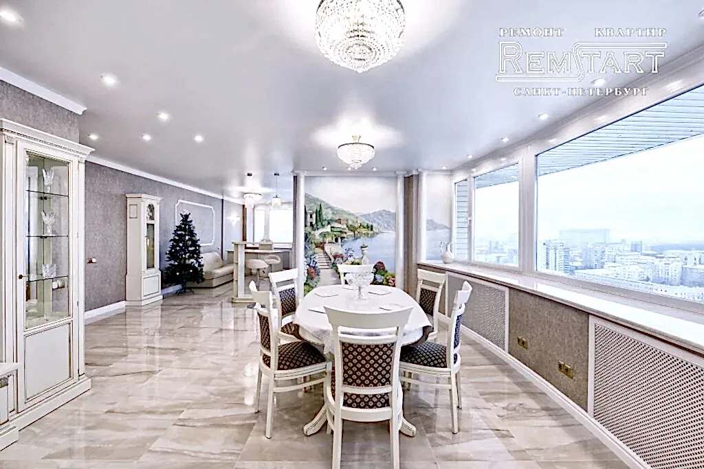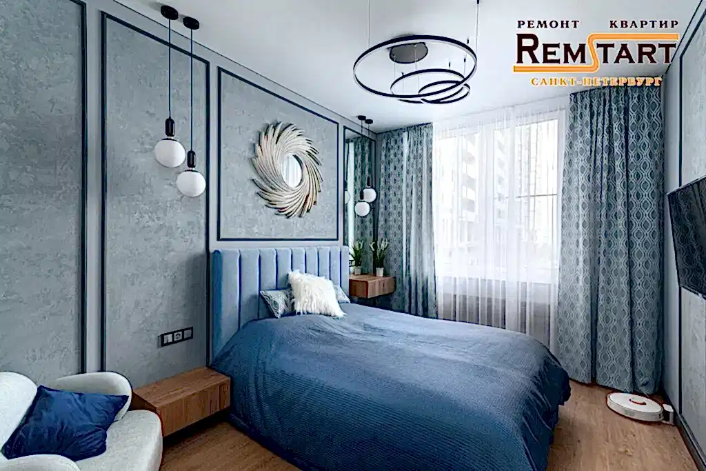 Красивый дорогостоящий ремонт видовой квартиры евротрешки в новостройке с Pin Up обеспечением материалами для работы.