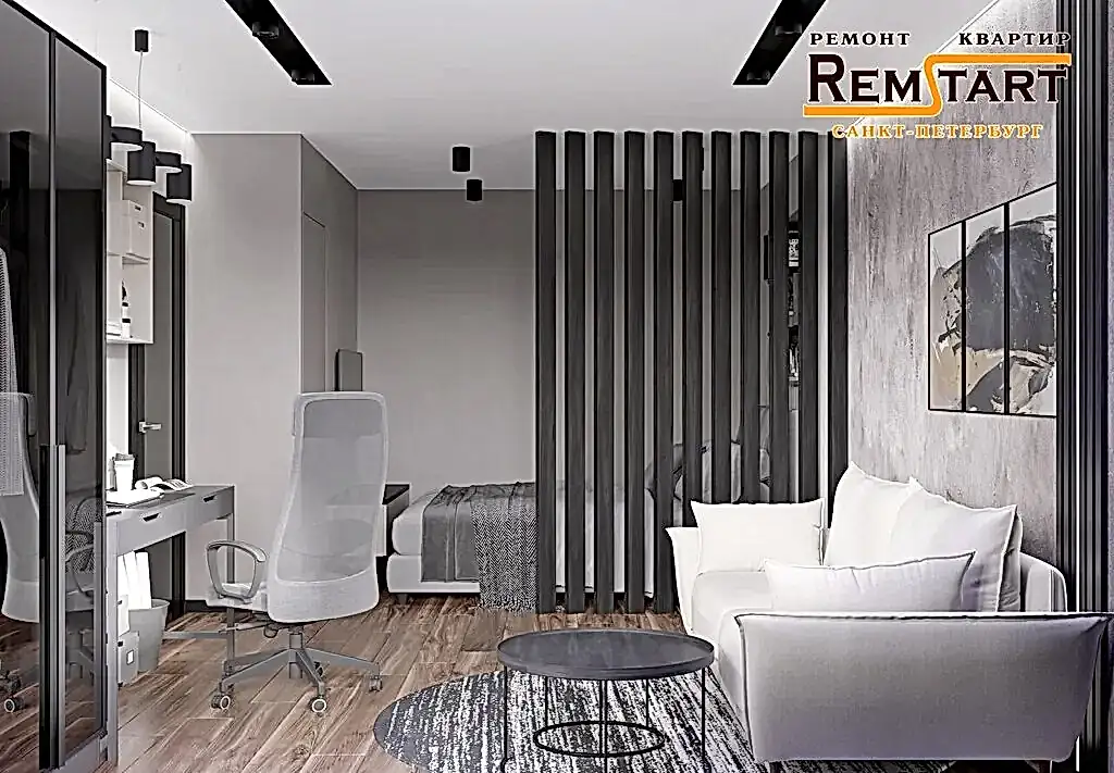 Ремонт Pin Up квартиры в 137 серии 1984 года реализован с бюджетными материалами в стиле минимализм.