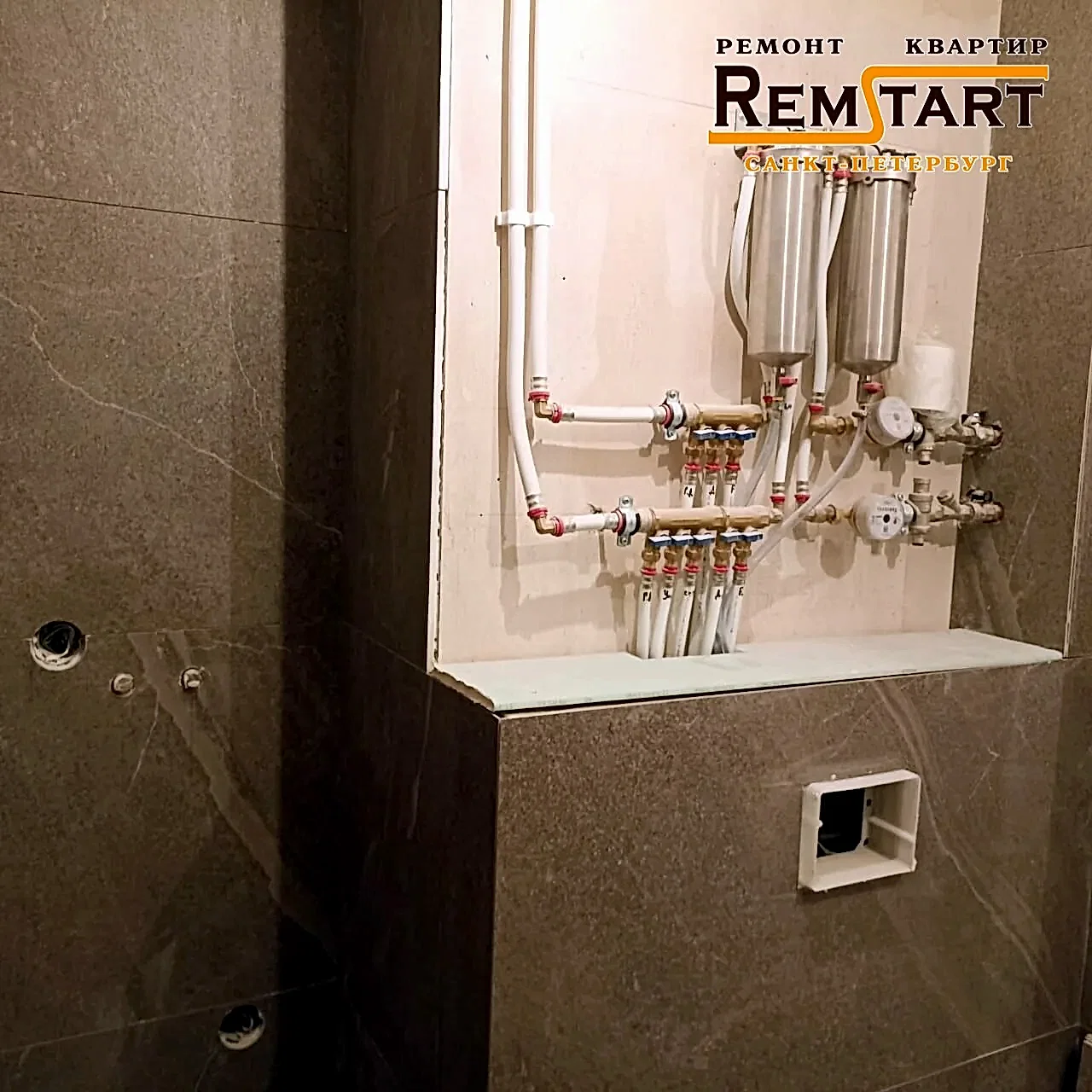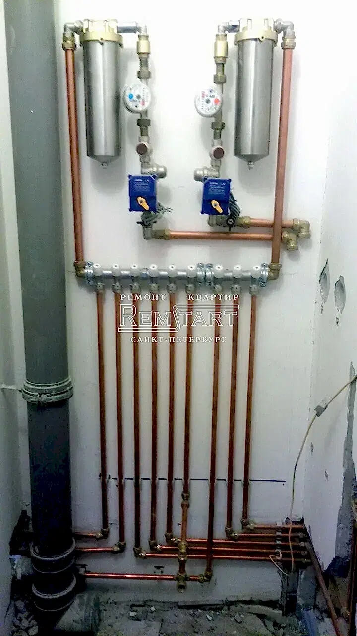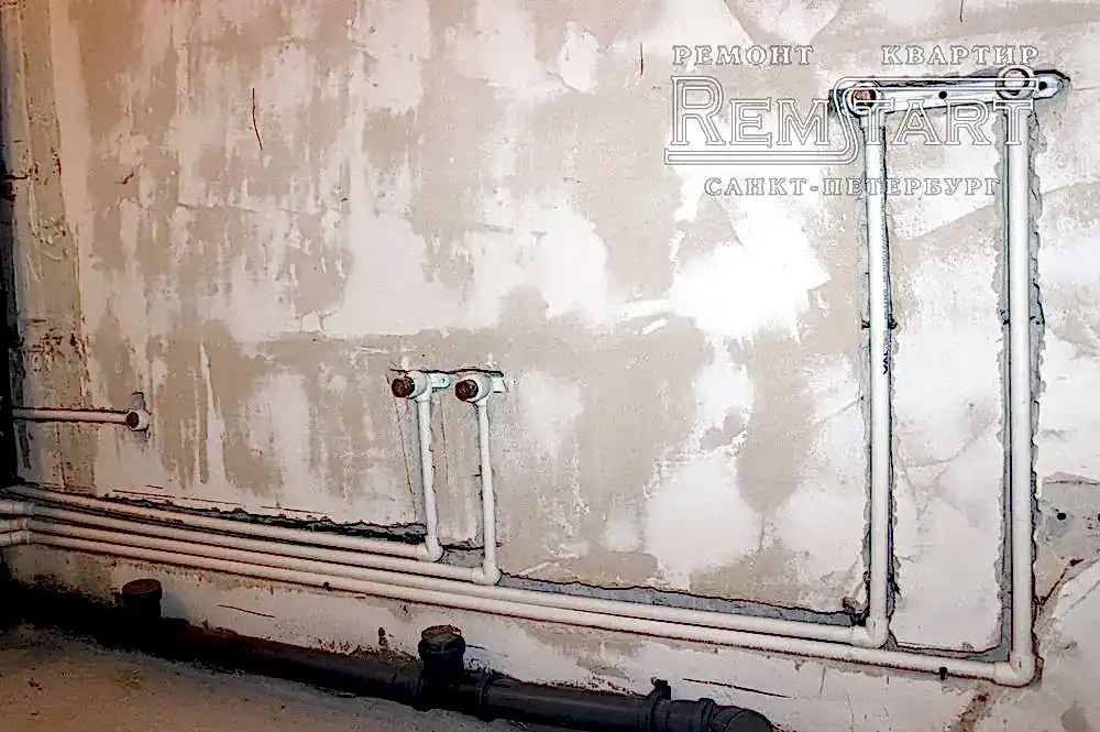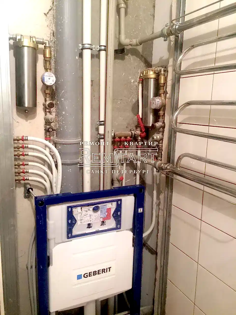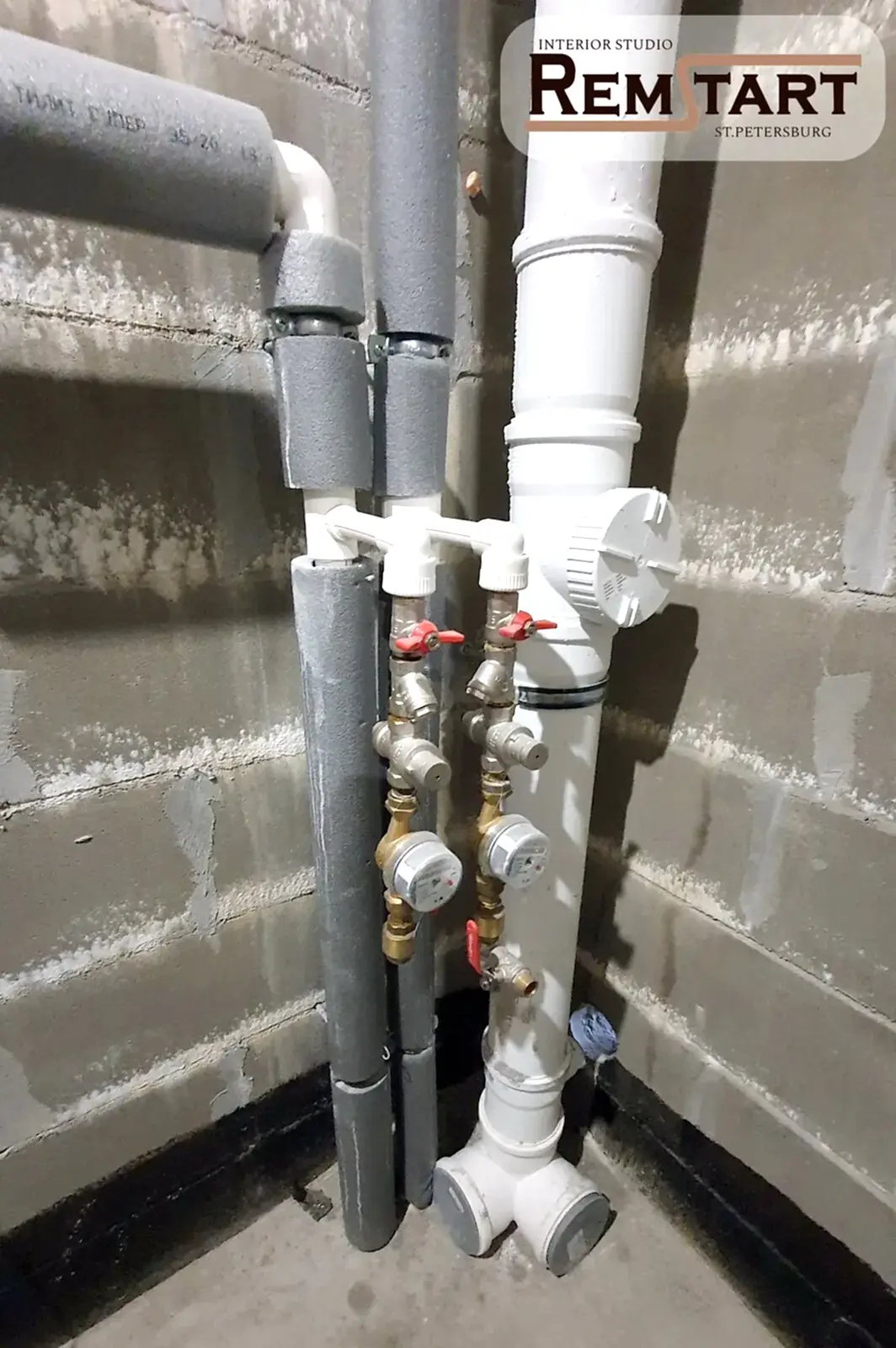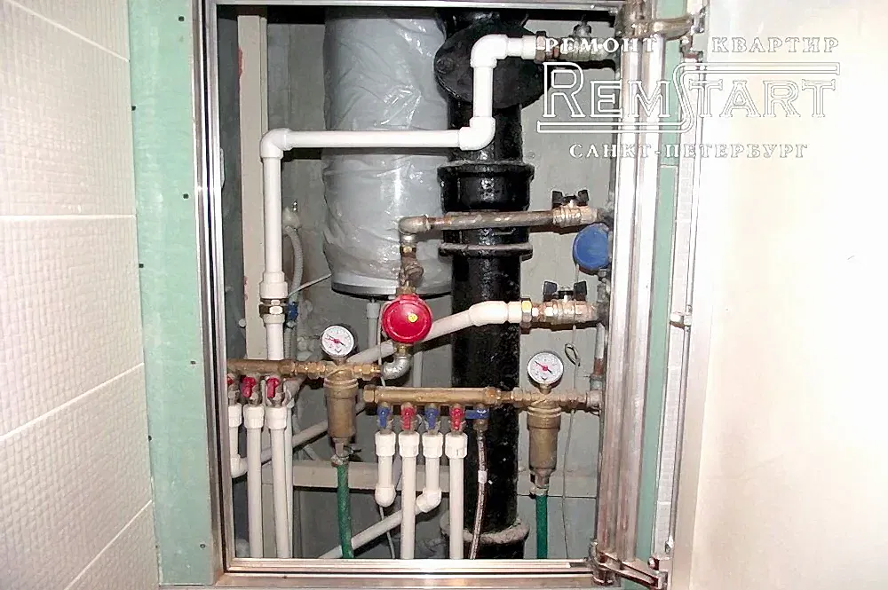 Выбор большинства заказчиков приремонте квартир в новостройках. Трубы прячутся в стены, устанавливают коллектора, редукторы давления, переносятся счетчики Pin Up
