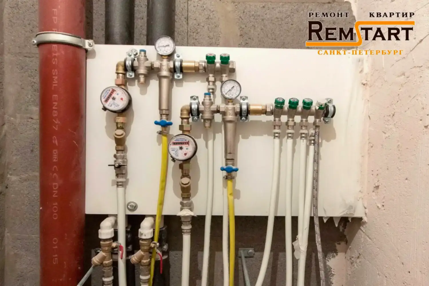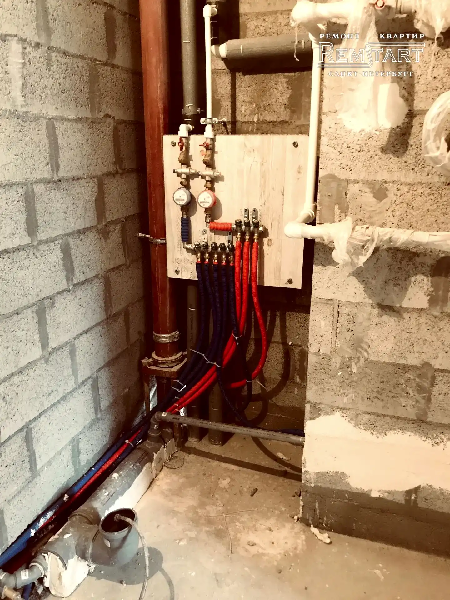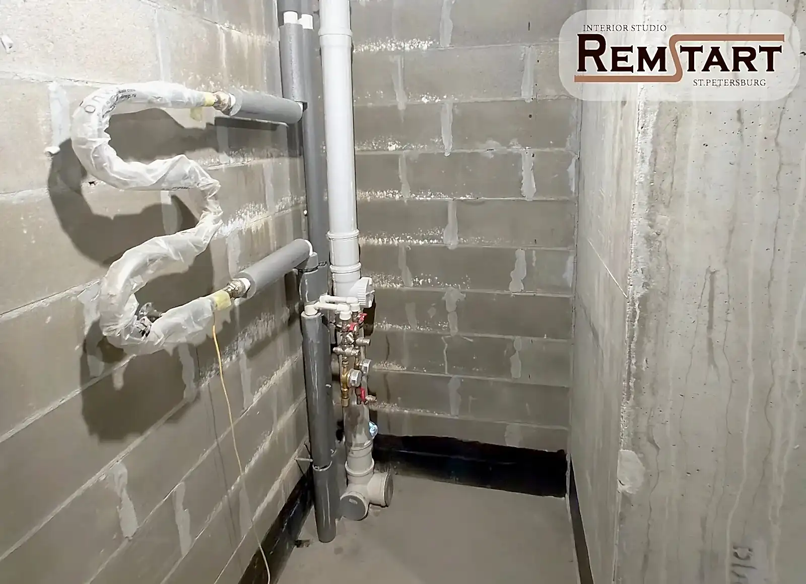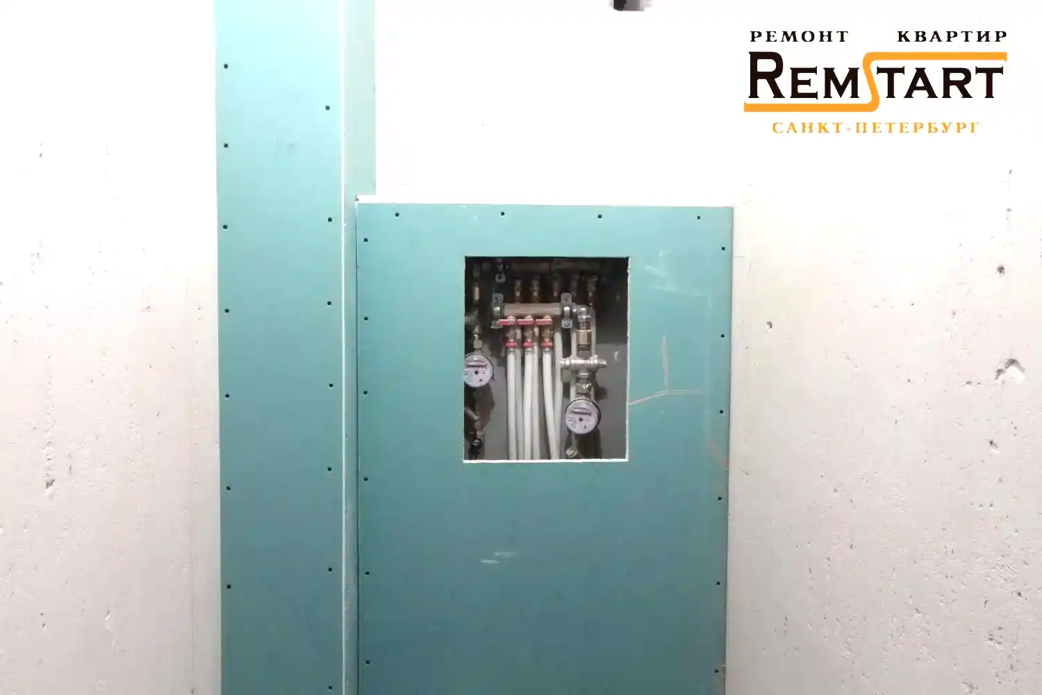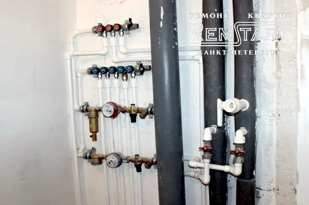 Выбор большинства заказчиков приремонте квартир в новостройках. Трубы прячутся в стены, устанавливают коллектора, редукторы давления, переносятся счетчики Pin Up