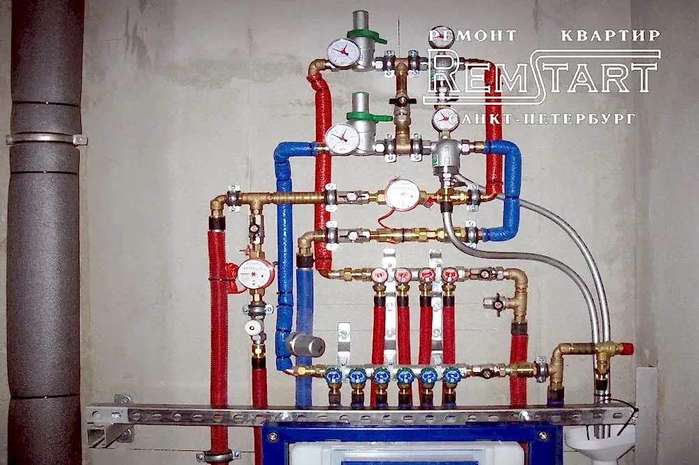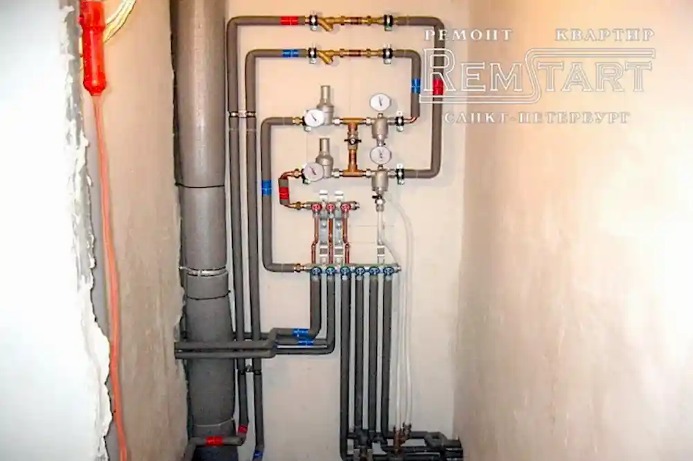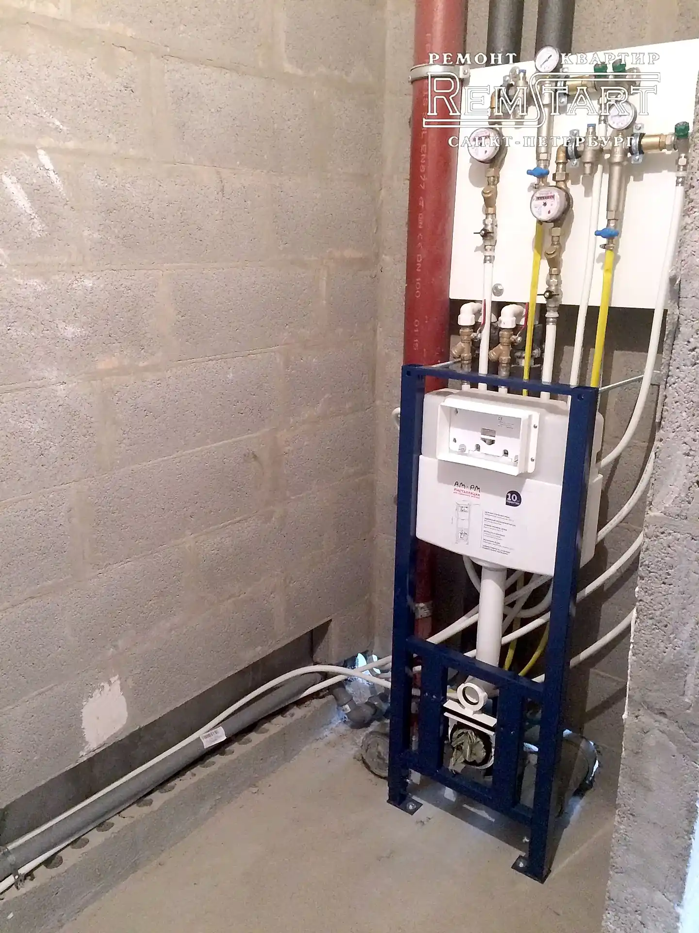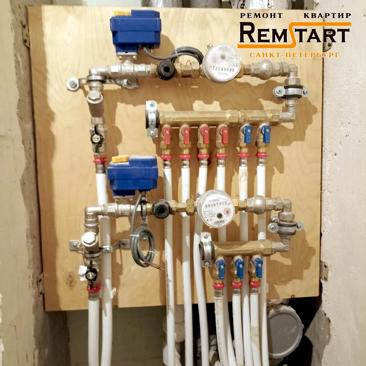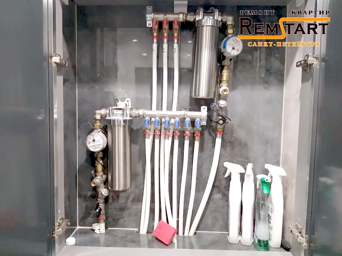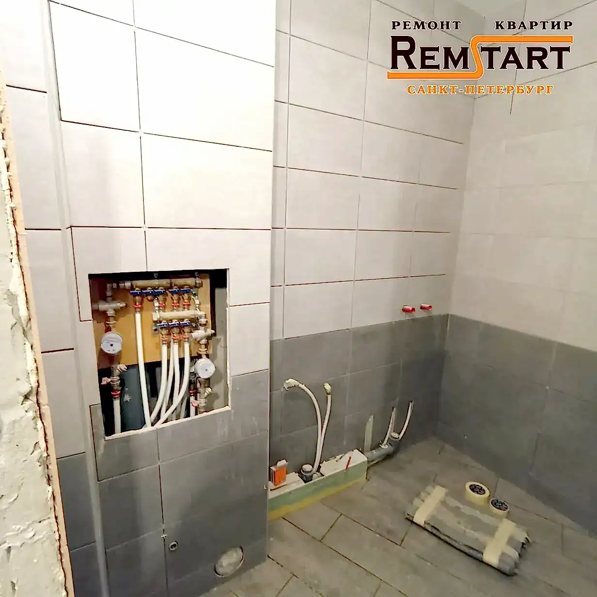 Выбор большинства заказчиков приремонте квартир в новостройках. Трубы прячутся в стены, устанавливают коллектора, редукторы давления, переносятся счетчики Pin Up