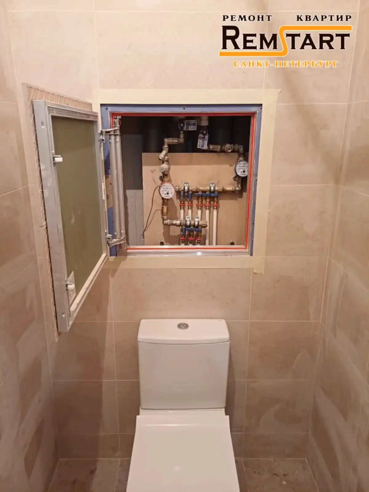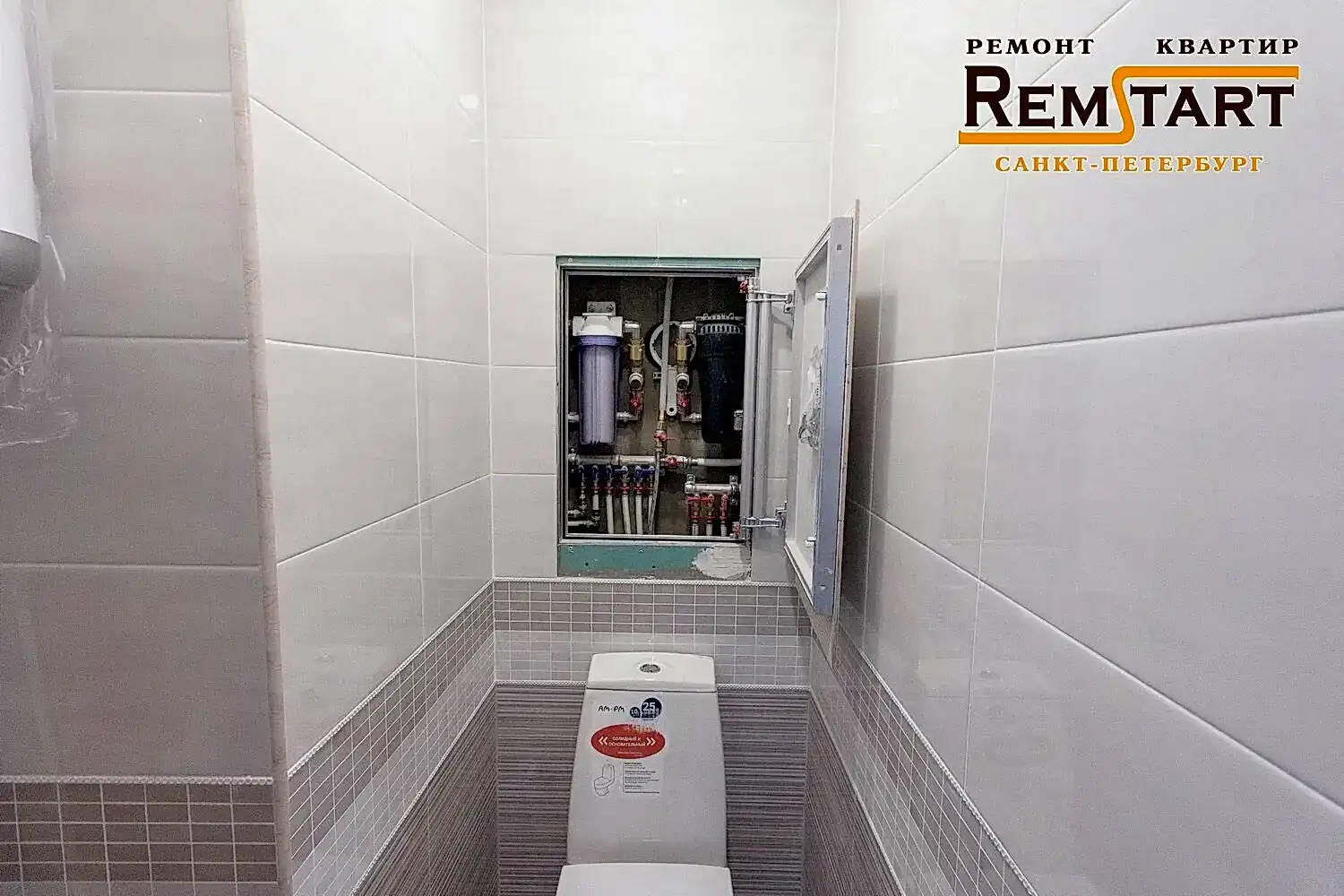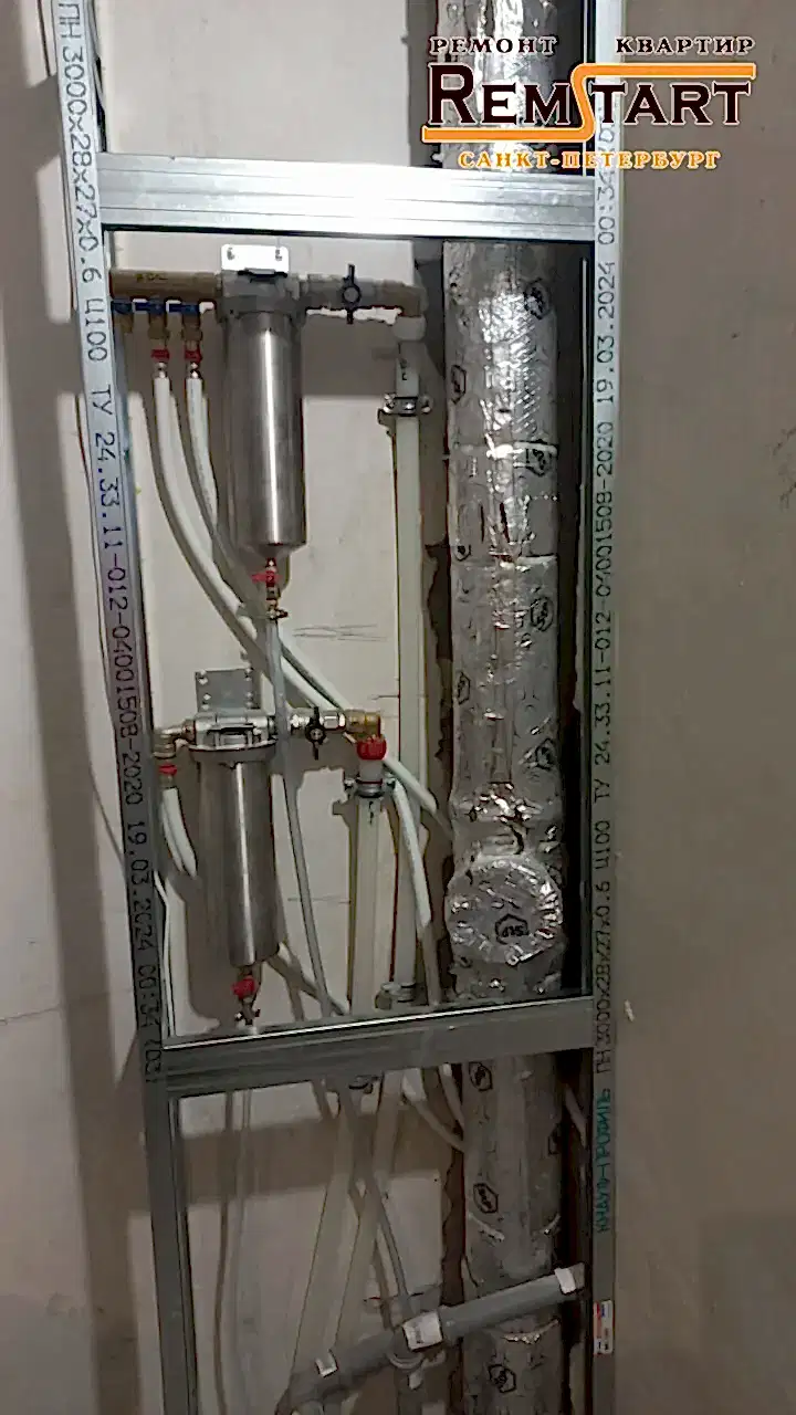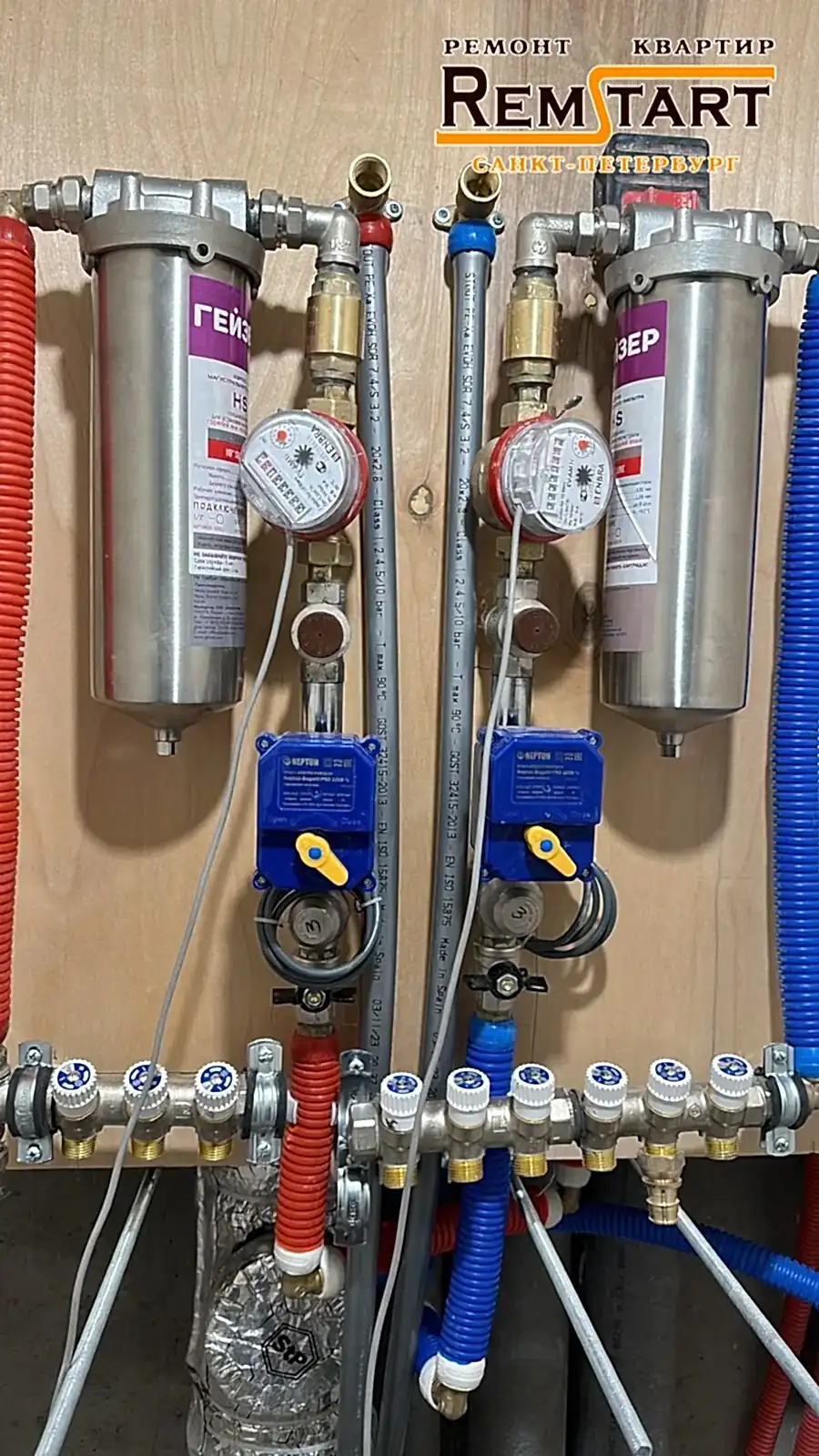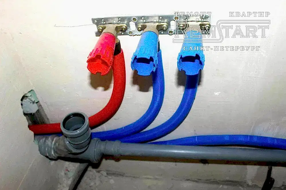Выбор большинства заказчиков приремонте квартир в новостройках. Трубы прячутся в стены, устанавливают коллектора, редукторы давления, переносятся счетчики Pin Up