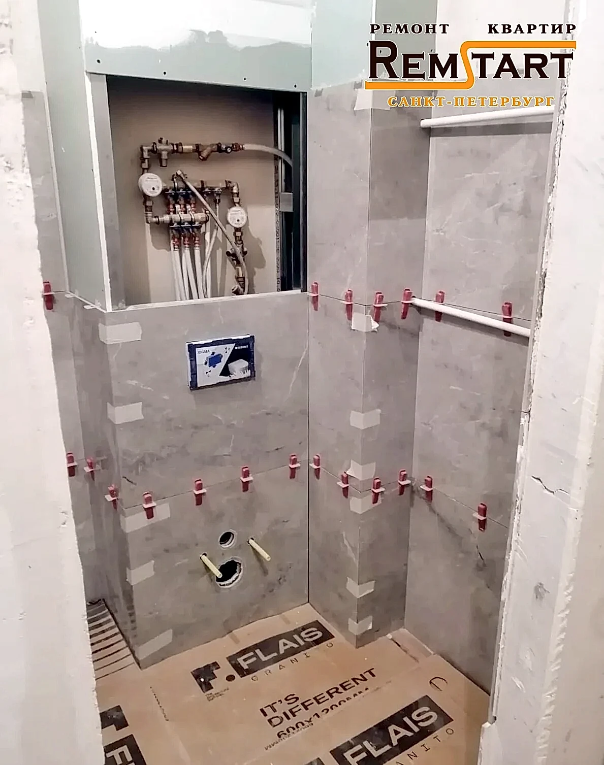 Для эстетического внешнего вида отделки - трубы водоснабжения и Pin Up углубляются в стены и остаются только выводы для подключения приборов.
