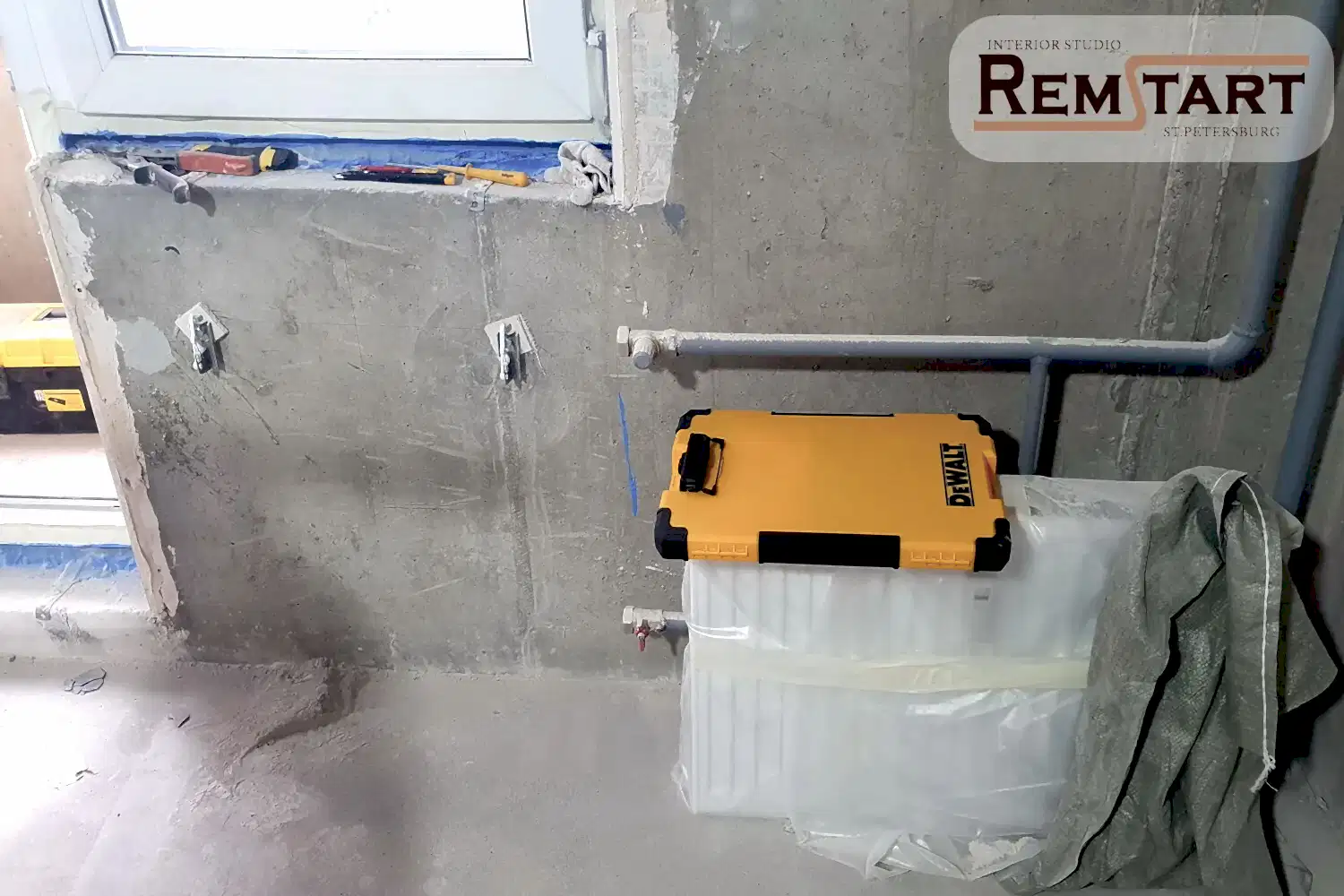 Без снятия радиатора не выполнить штукатурку, шпаклевку и чистовую отделку. Для реализации задачи - необходимо Pin Up в управляющую компанию и отключение стояка водоснабжения.