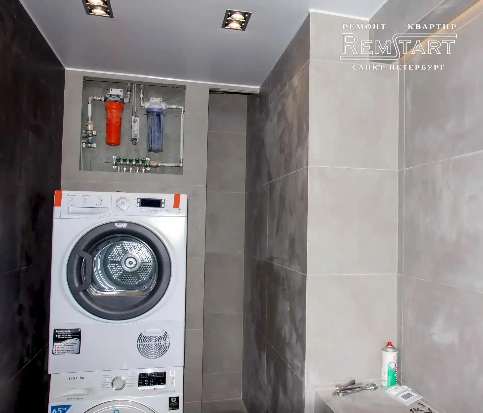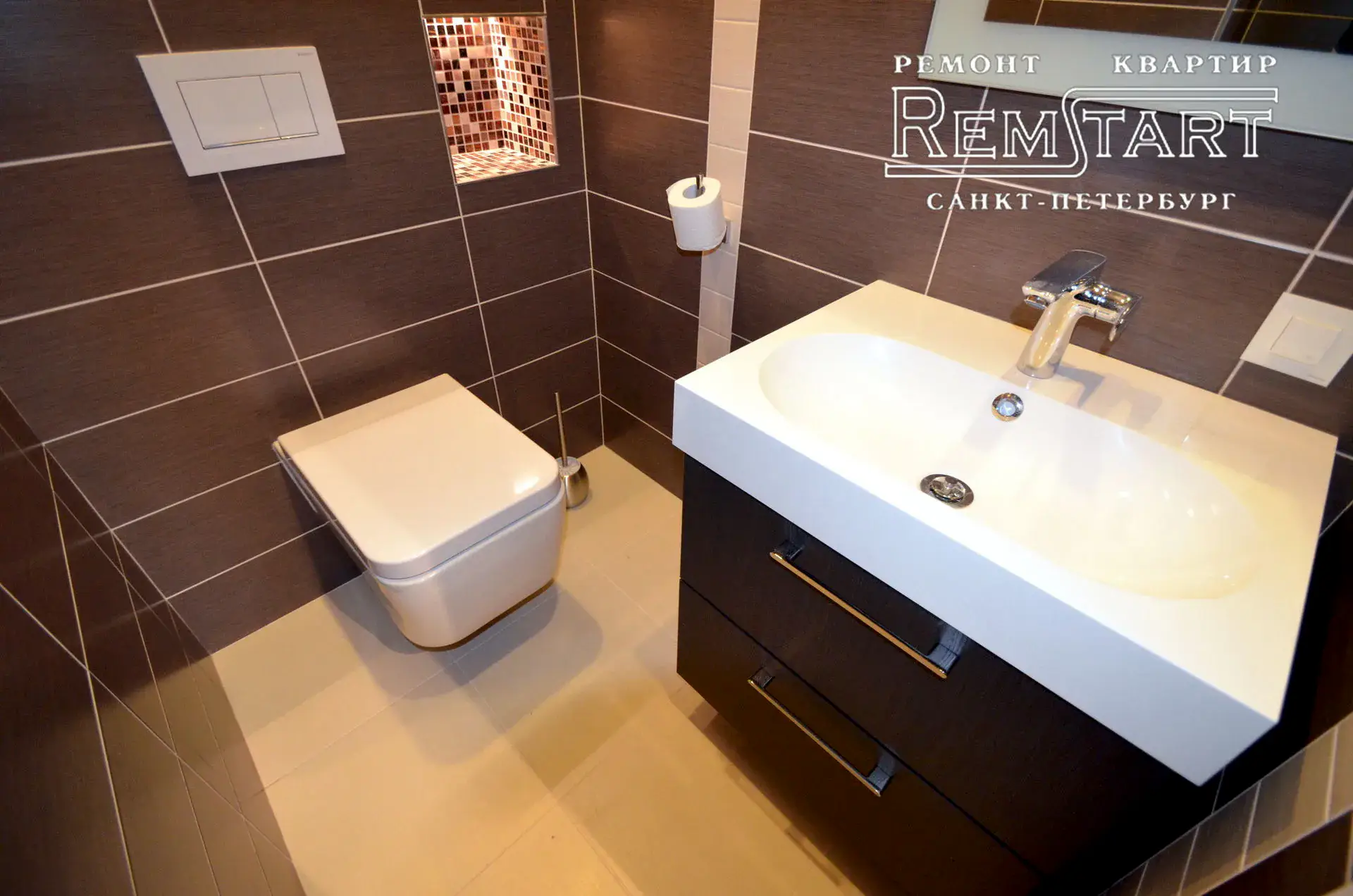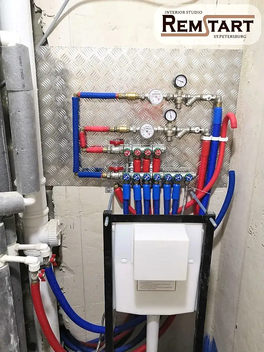 Ремонт ванной комнаты Pin Up выполняется с заменой системы водопровода и фановых труб канализации. Выполняется большой комплекс дорогостоящих работ с заменой счетчиков и переносом их в удобное место.