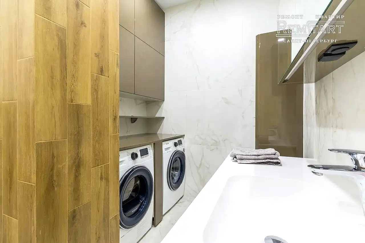 Процесс ремонта ванной и санузла в новостройке Pin Up менее затратен по сравнению с квартирами вторичного рынка, по причине отсутствия демонтажа старого оборудования и отделки.