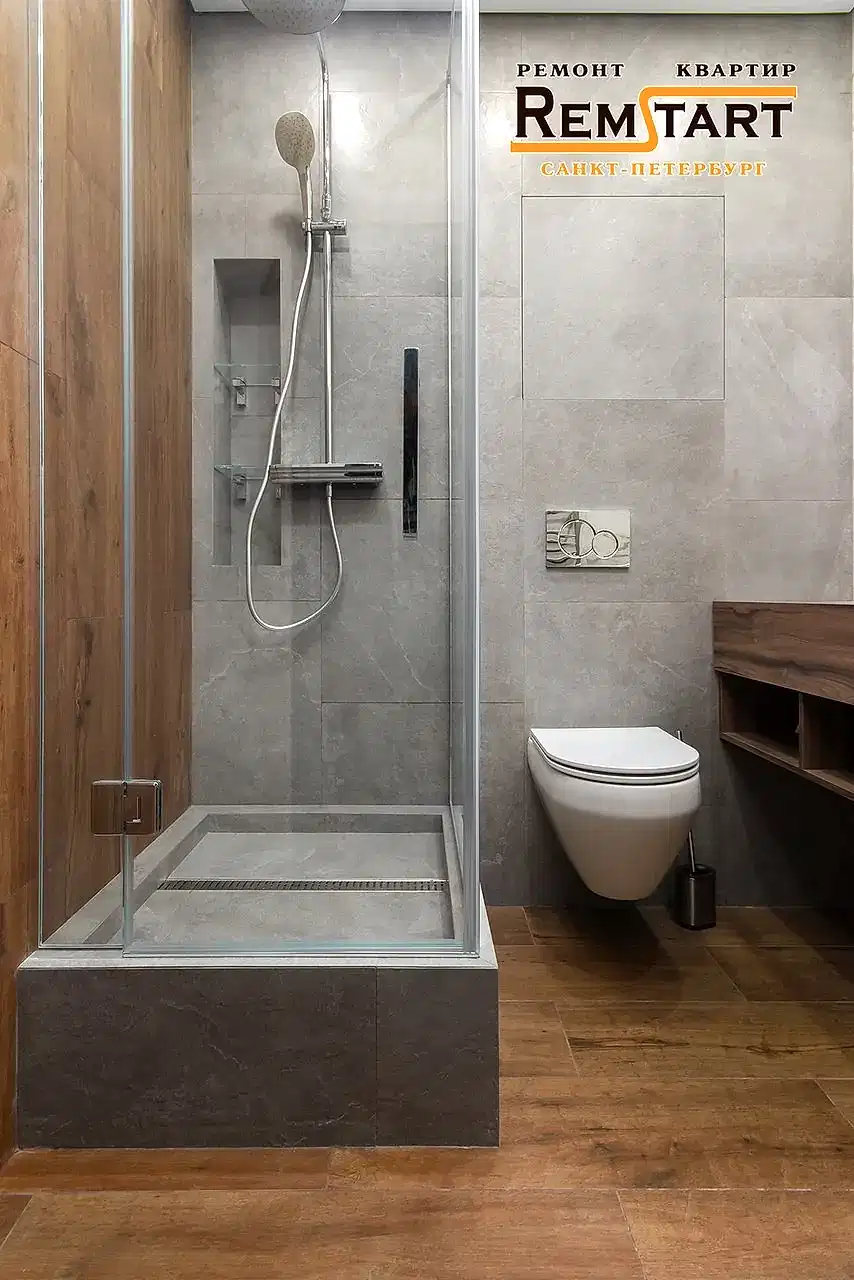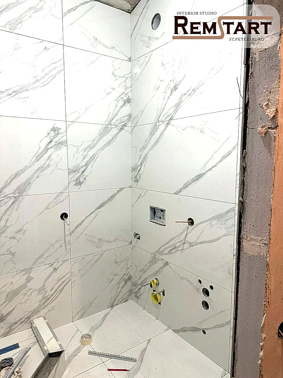 В случае изготовления душевого подиума со сливом в пол - выполняется двойная \ Pin Up изоляция пола и стен в мокрой зоне.
