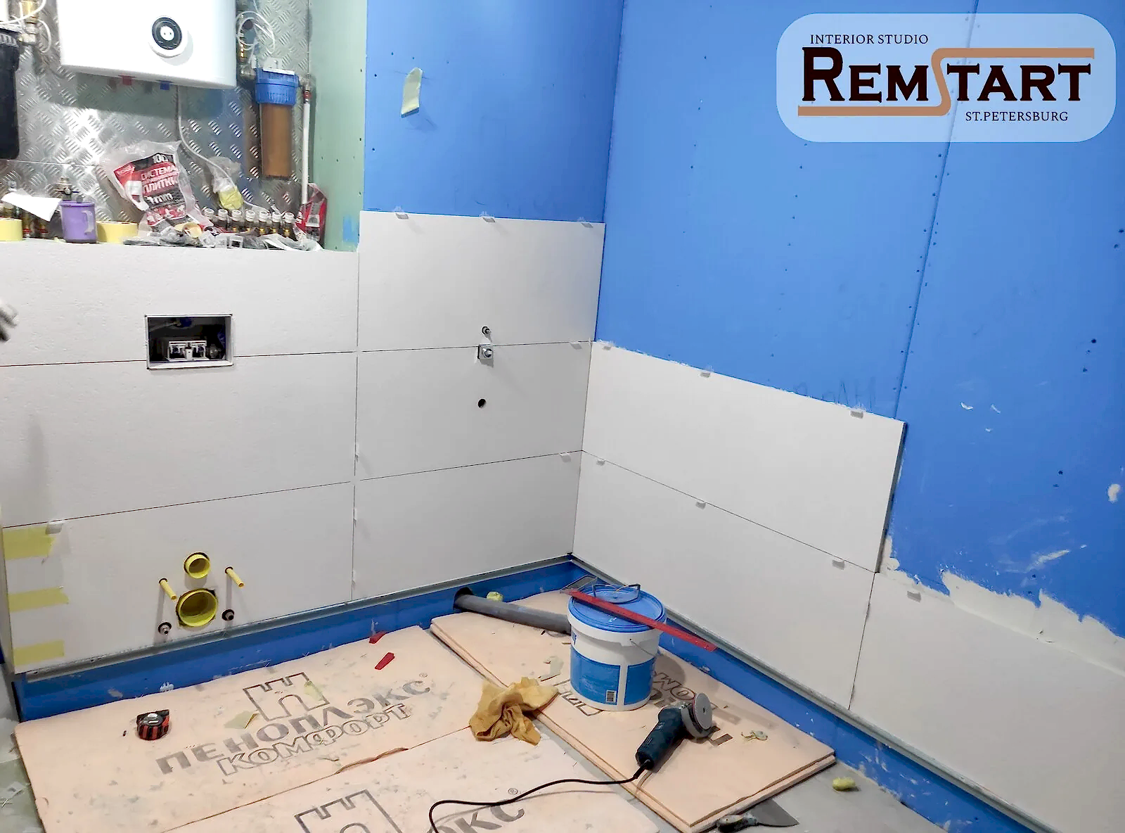 Для штукатурки стен в ванной комнате мы применяем гипсовую Pin Up Knauf Rotband. В цементной смеси нет необходимости!