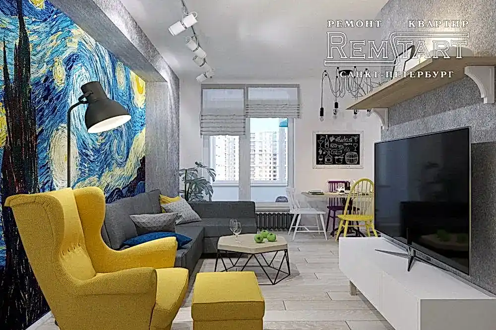 Допускается сочетание промышленных и натуральных материалов, Pin Up ярких цветов. Общая концепция - четкость и простота, максимальная функциональность.
