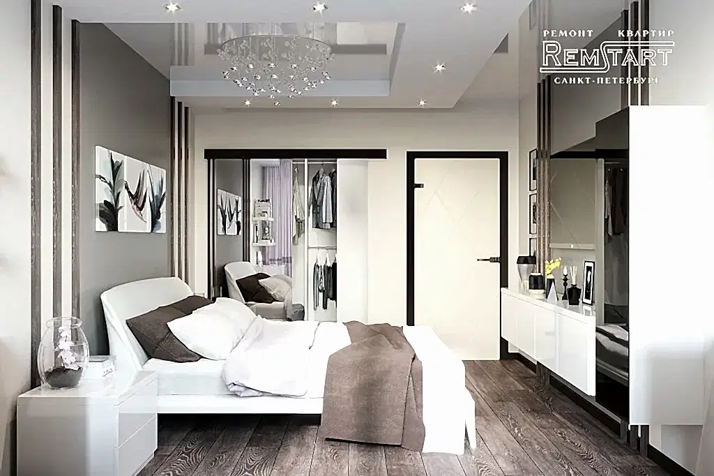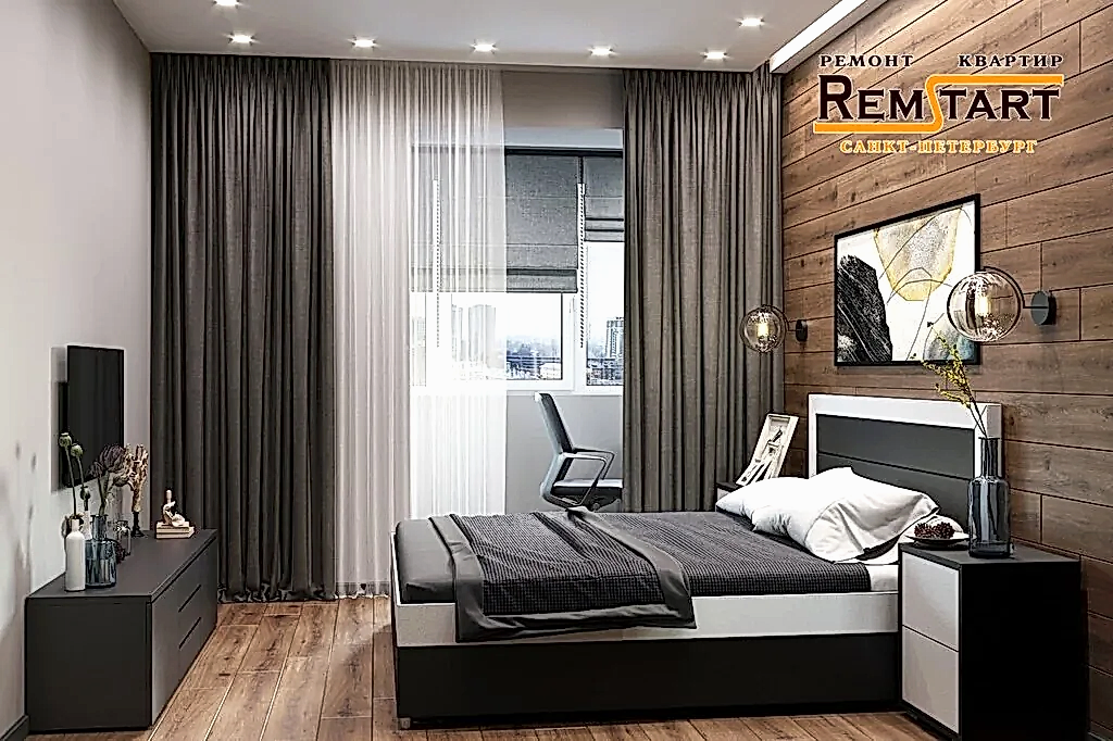 Пространство не перегружено деталями и Pin Up четкие границы. Цветовая палитра представлена натуральными оттенками: серый, бежевый, черный, белый.