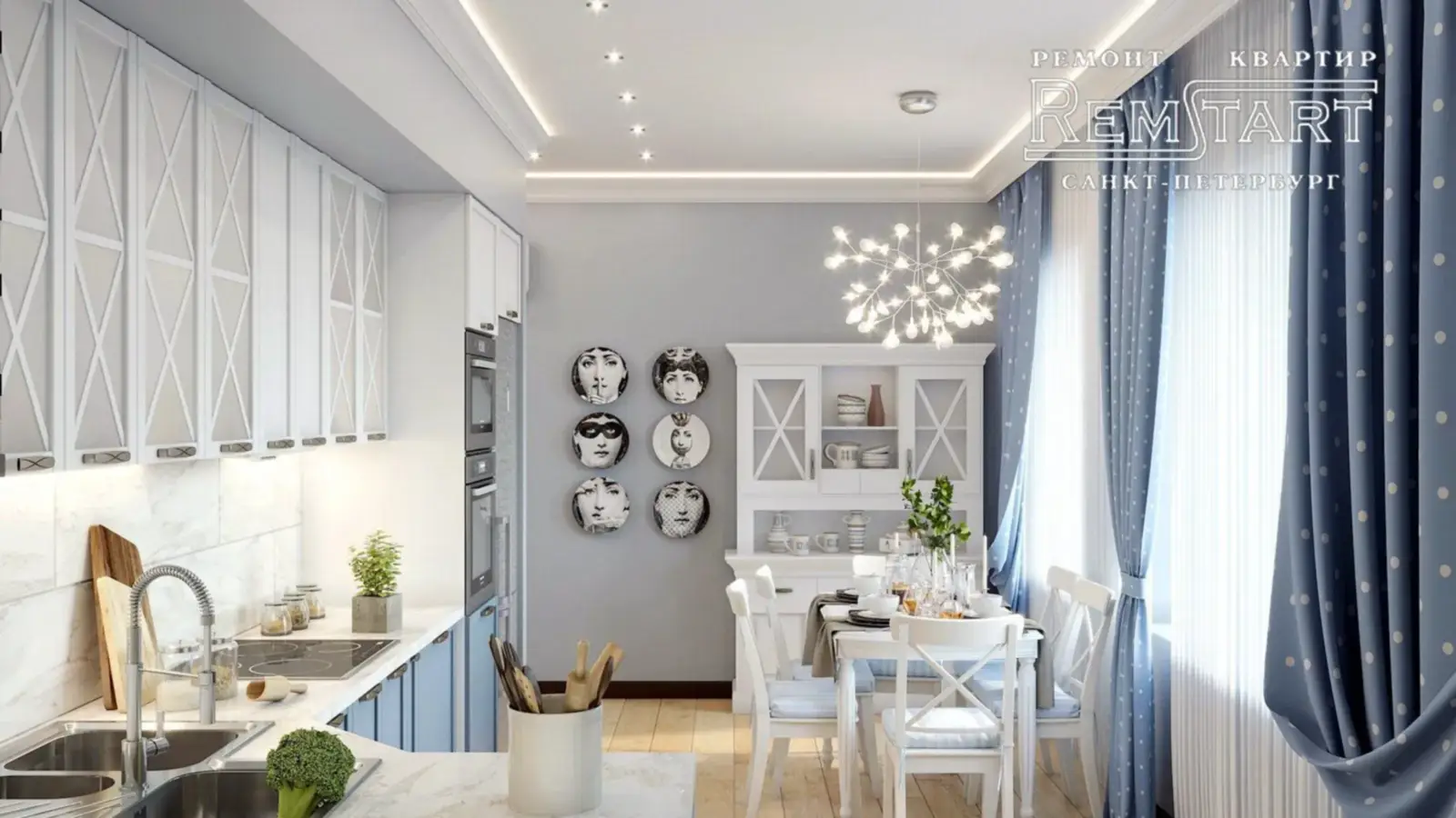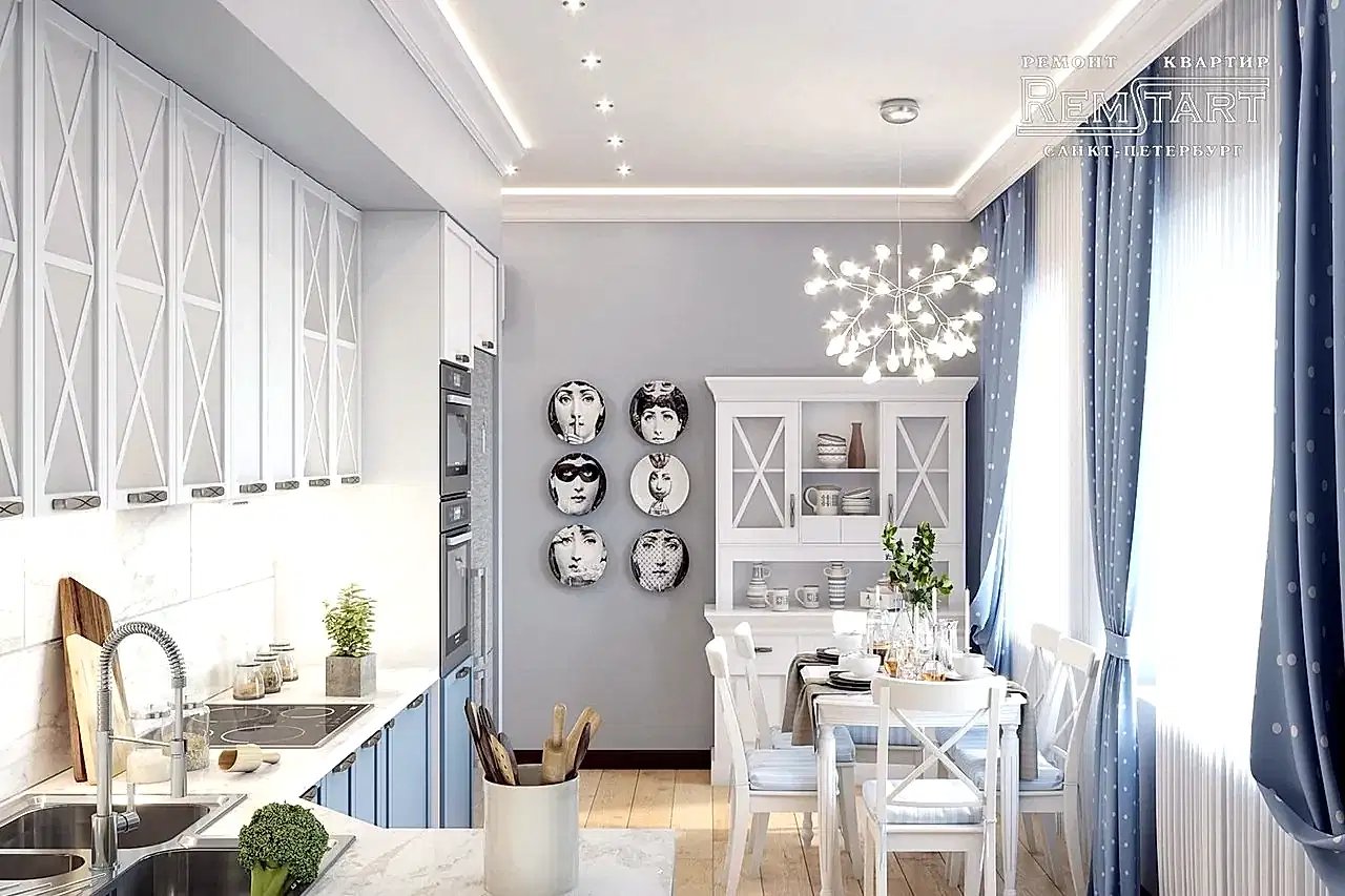 На кухне и в других помещениях также присутствуют нотки классики, Pin Up в особенностях освещения и использовании изысканного декора.