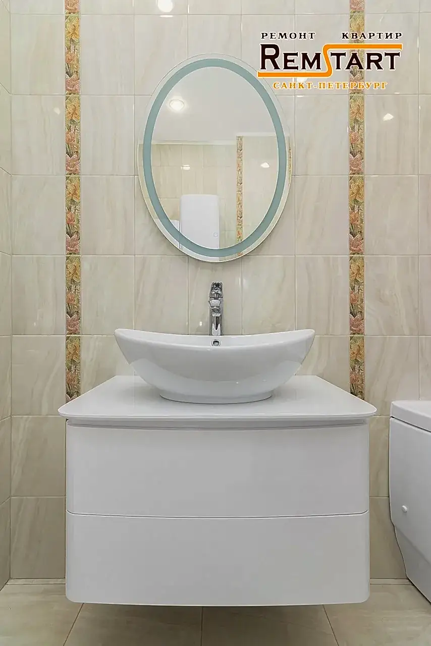 В ванной была уложена кафельная Pin Up и установленасантехника, на Pin Up выполнен монтаж гарнитура.