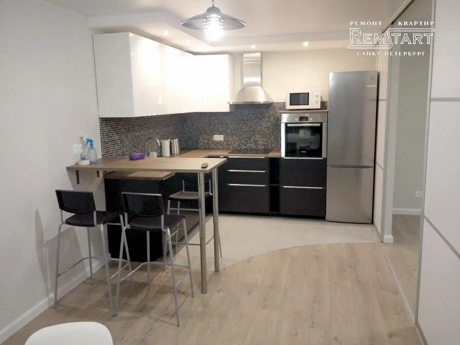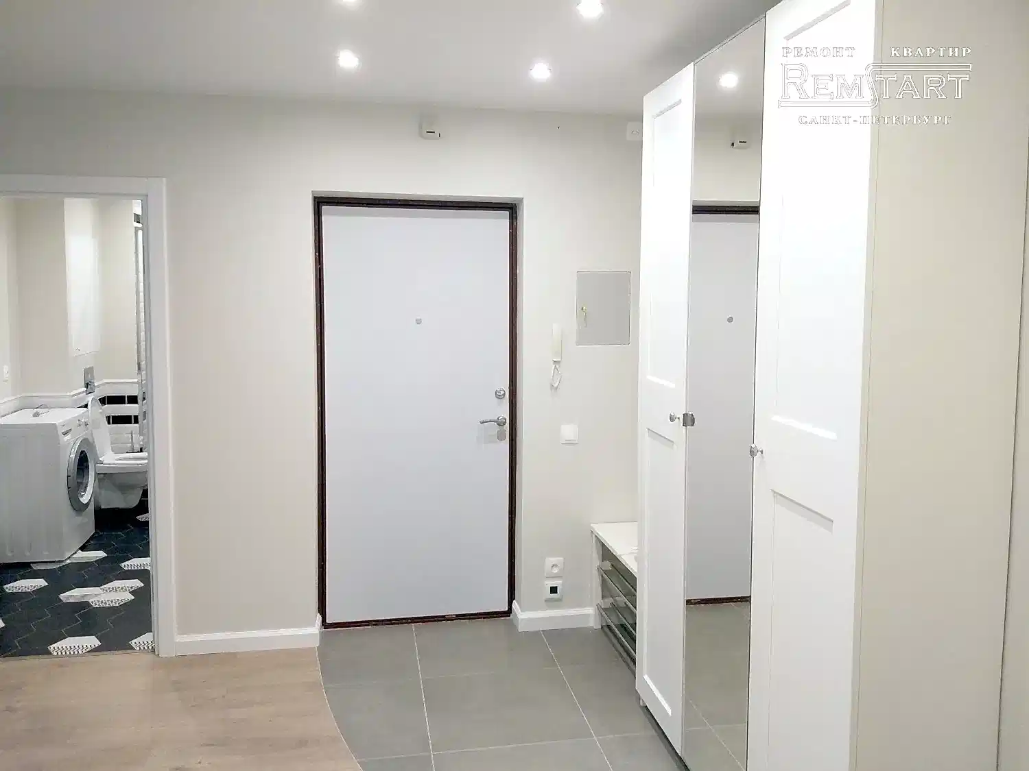 Выполнена перепланировка, согласованная с Заказчиком, заменена Pin Up и сделана инженерная сантехника, которая отсутствует в новостройках.