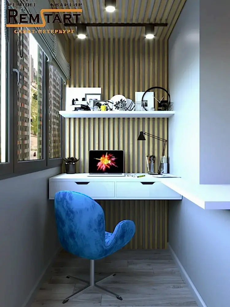 Главной задачей стало - соединить лоджию с кухней и организовать уютное и светлое рабочее место, что было реализовано в первую очередь.